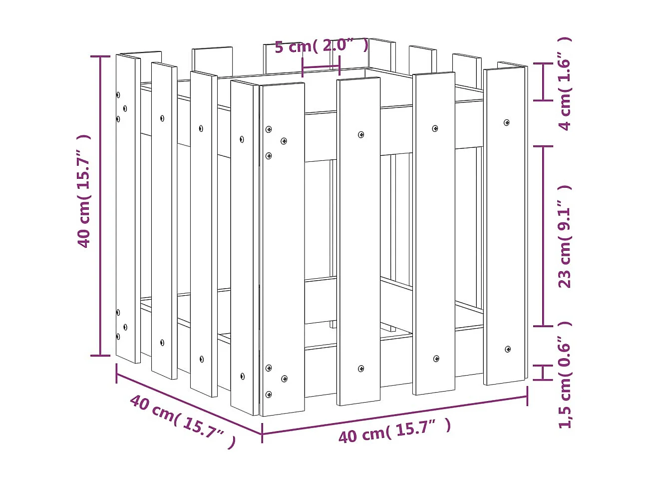 Jardinière avec design de clôture 40x40x40 cm pin imprégné
