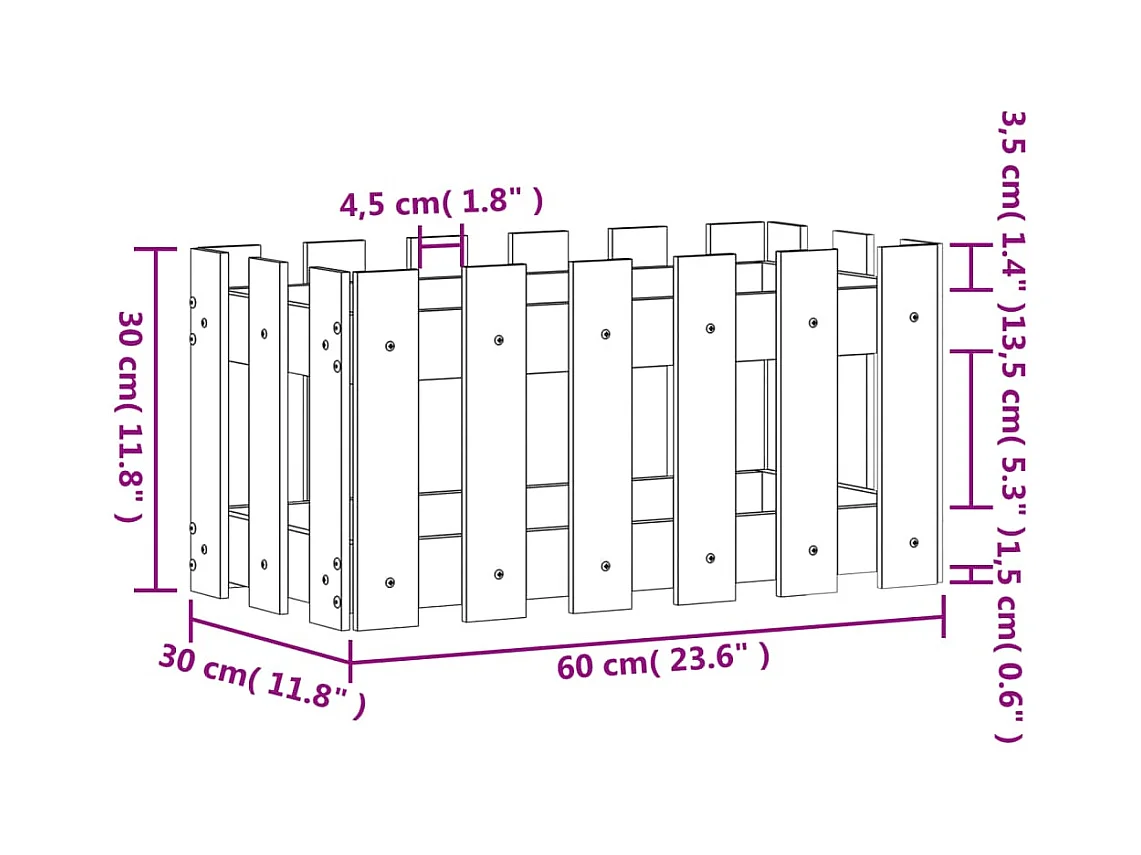 Jardinière avec design de clôture 60x30x30 cm pin imprégné BE3503