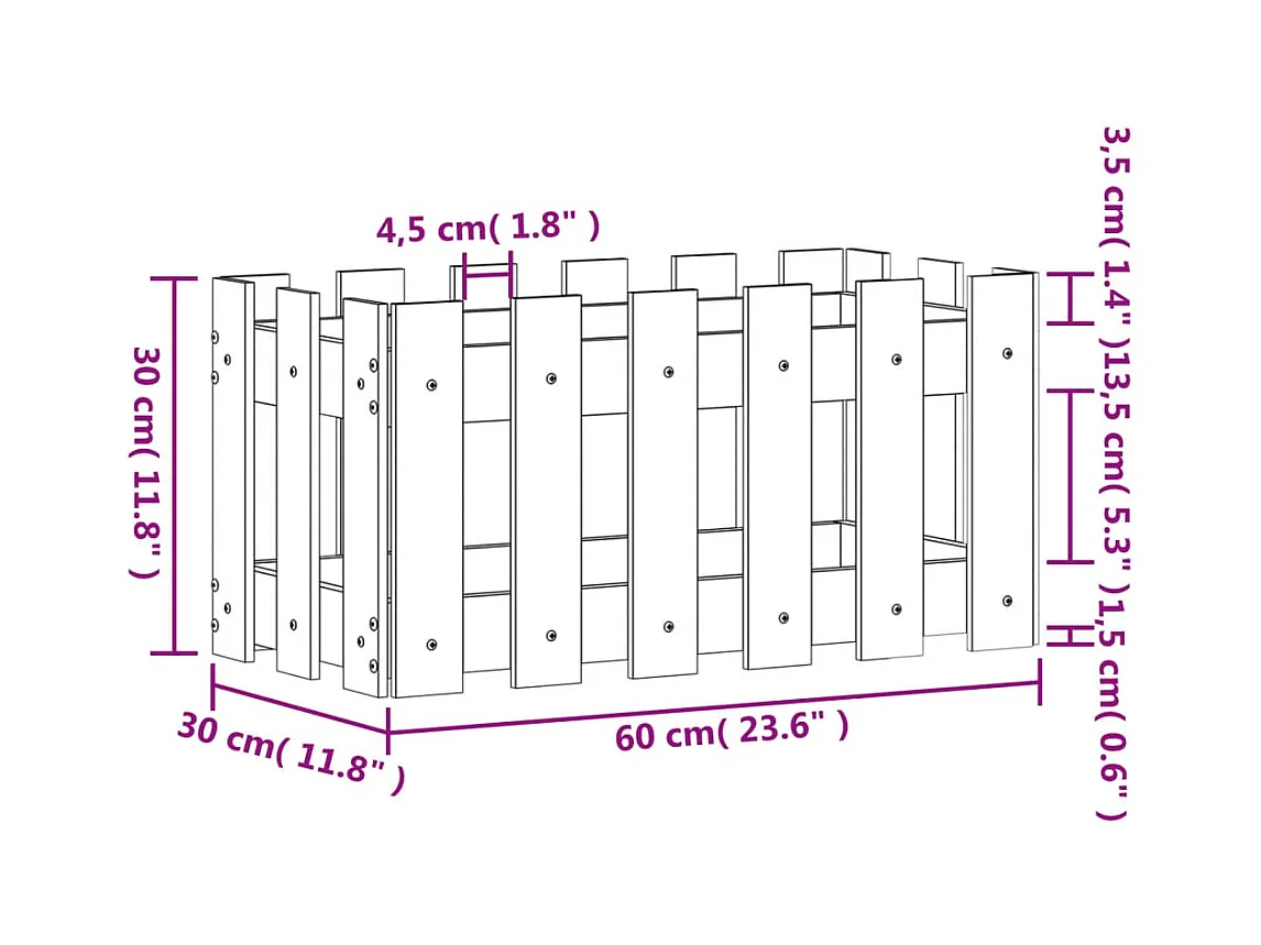 Jardinière avec design de clôture 60x30x30 douglas massif