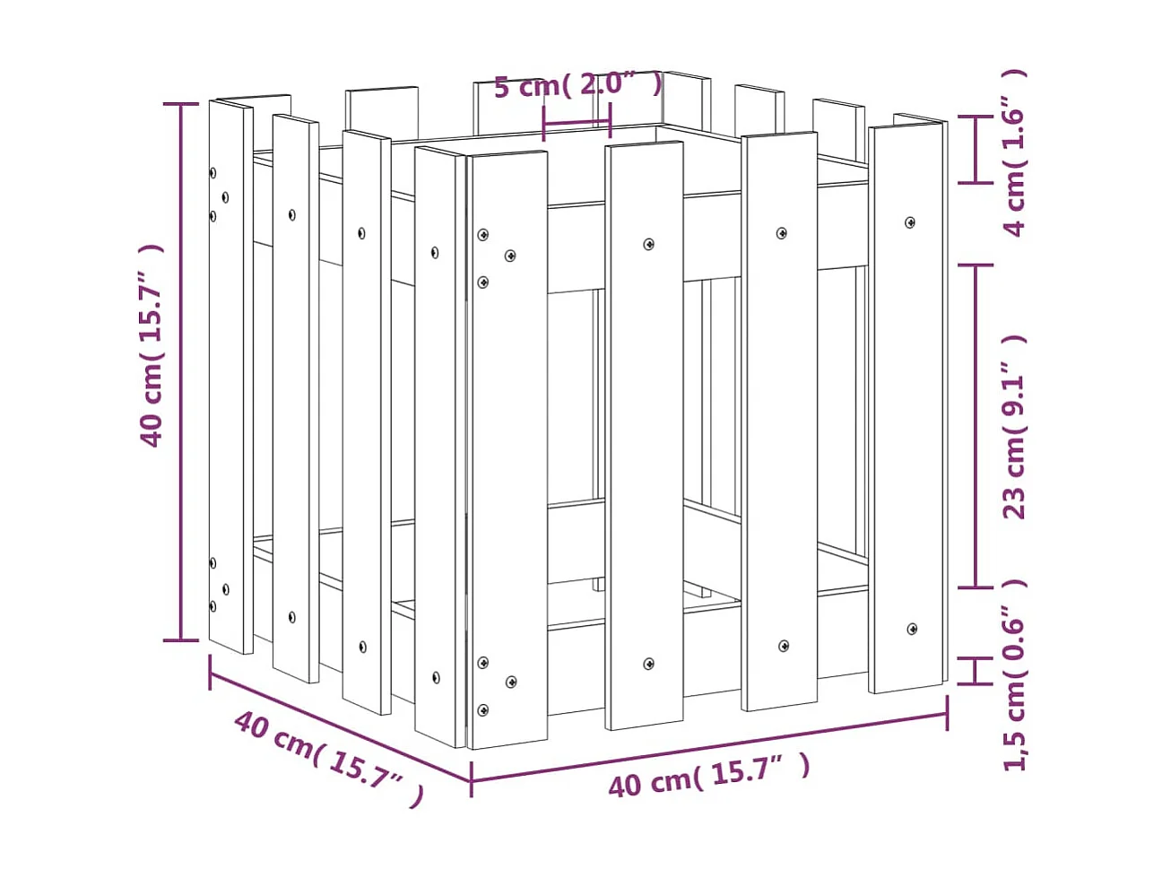 Jardinière avec design de clôture noir 40x40x40 cm pin massif