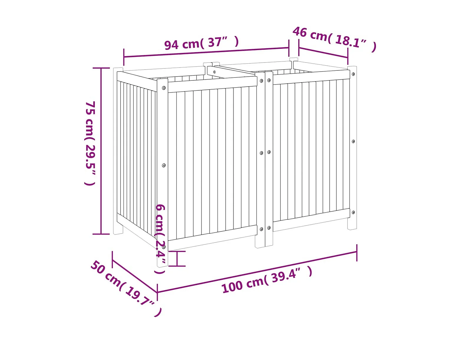 Jardinière avec doublure 100x50x75 bois massif d'acacia