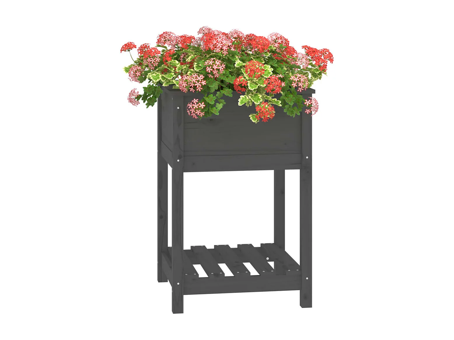 Jardinière avec étagère Gris 82,5x82,5x81 Bois massif de pin