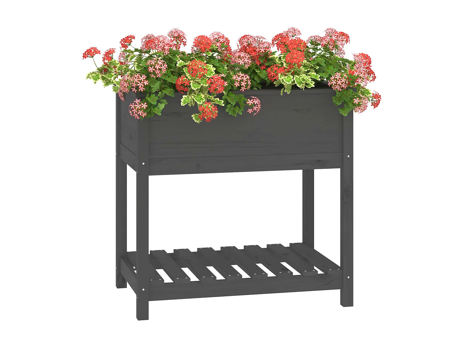 Jardinière avec étagère Gris 82,5x82,5x81 Bois massif de pin