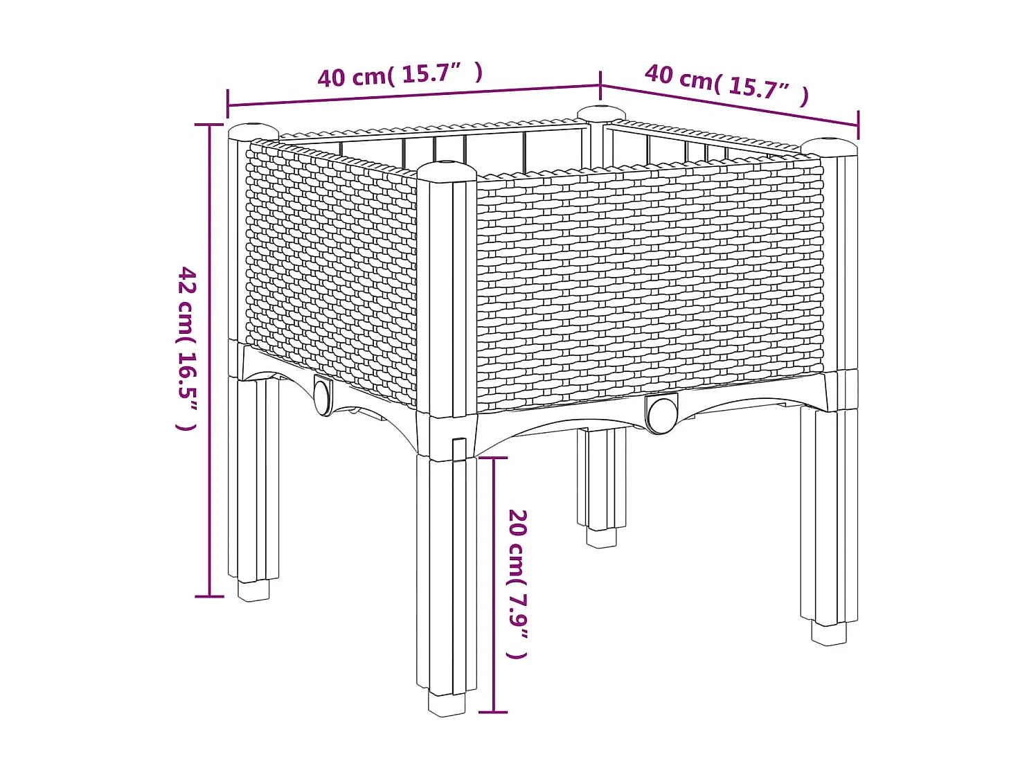 Jardinière avec piquets gris 42,5x42,5x28,5 cm PP