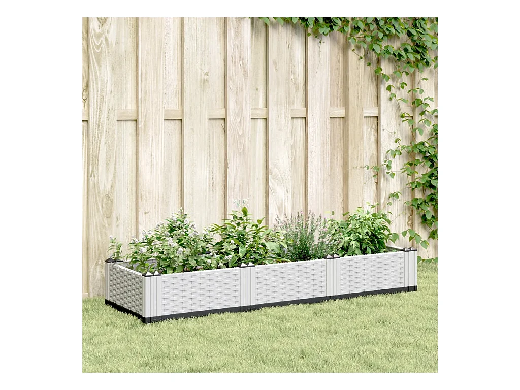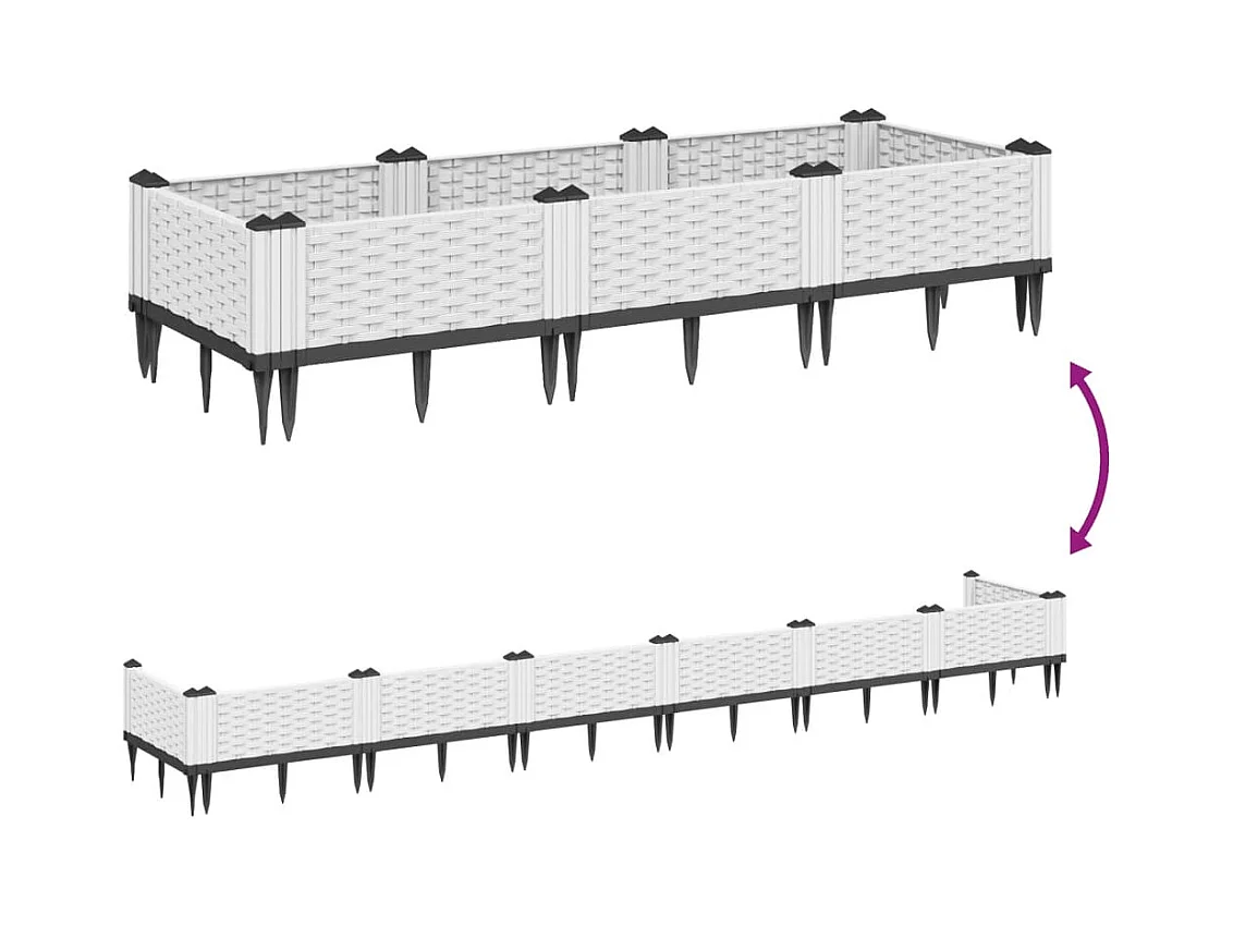 Jardinière avec piquets blanc 125x40x28,5 cm PP