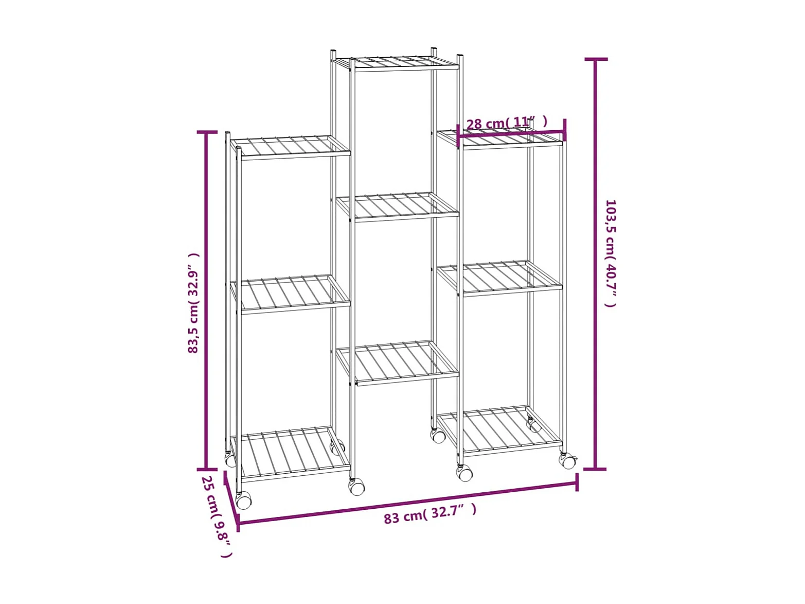 Support pour plantes sur roues 94,5x25x92,5 cm Noir Métal