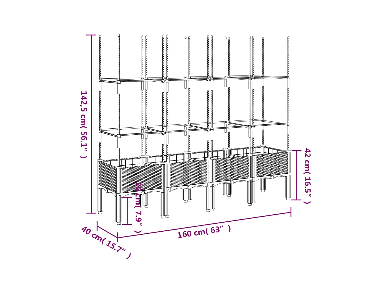 Jardinière avec treillis blanc 160x40x142,5 cm PP