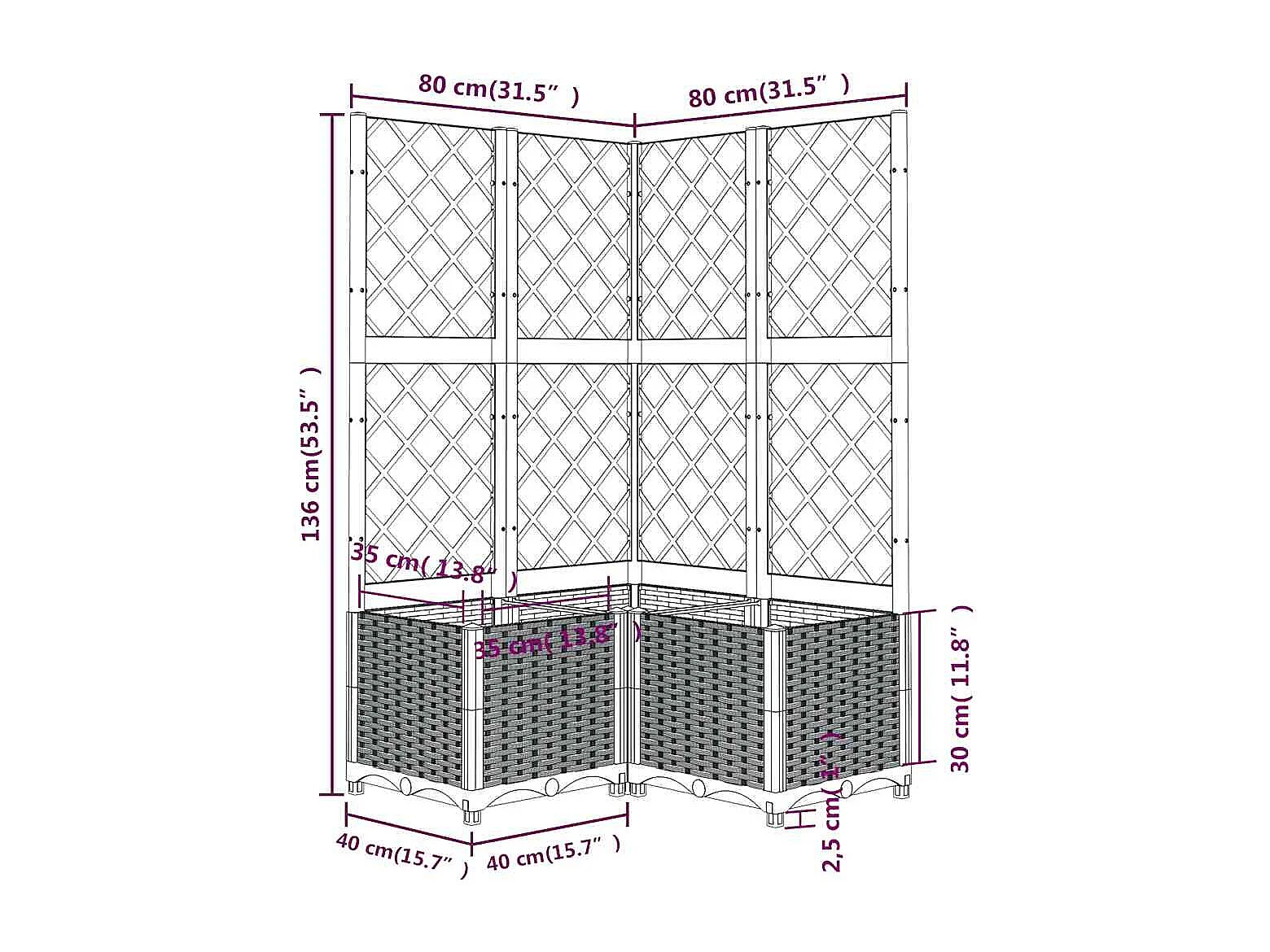 Jardinière avec treillis Gris clair 80x40x136 cm PP