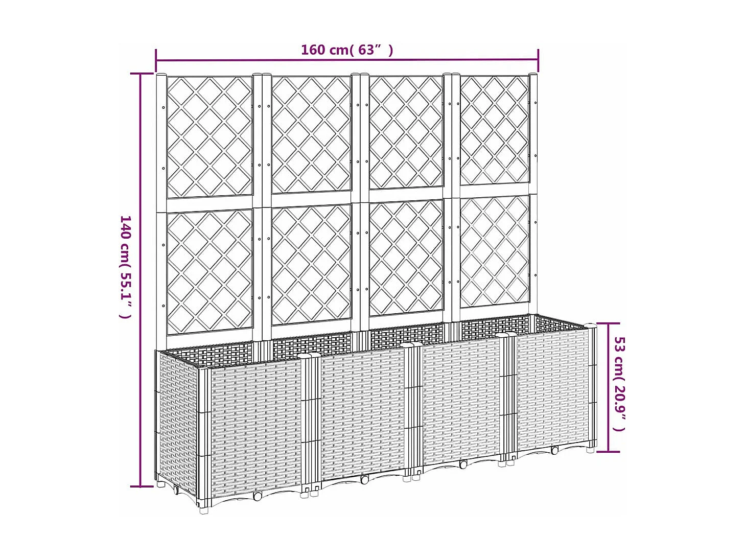 Jardinière avec treillis gris 160x40x140 PP