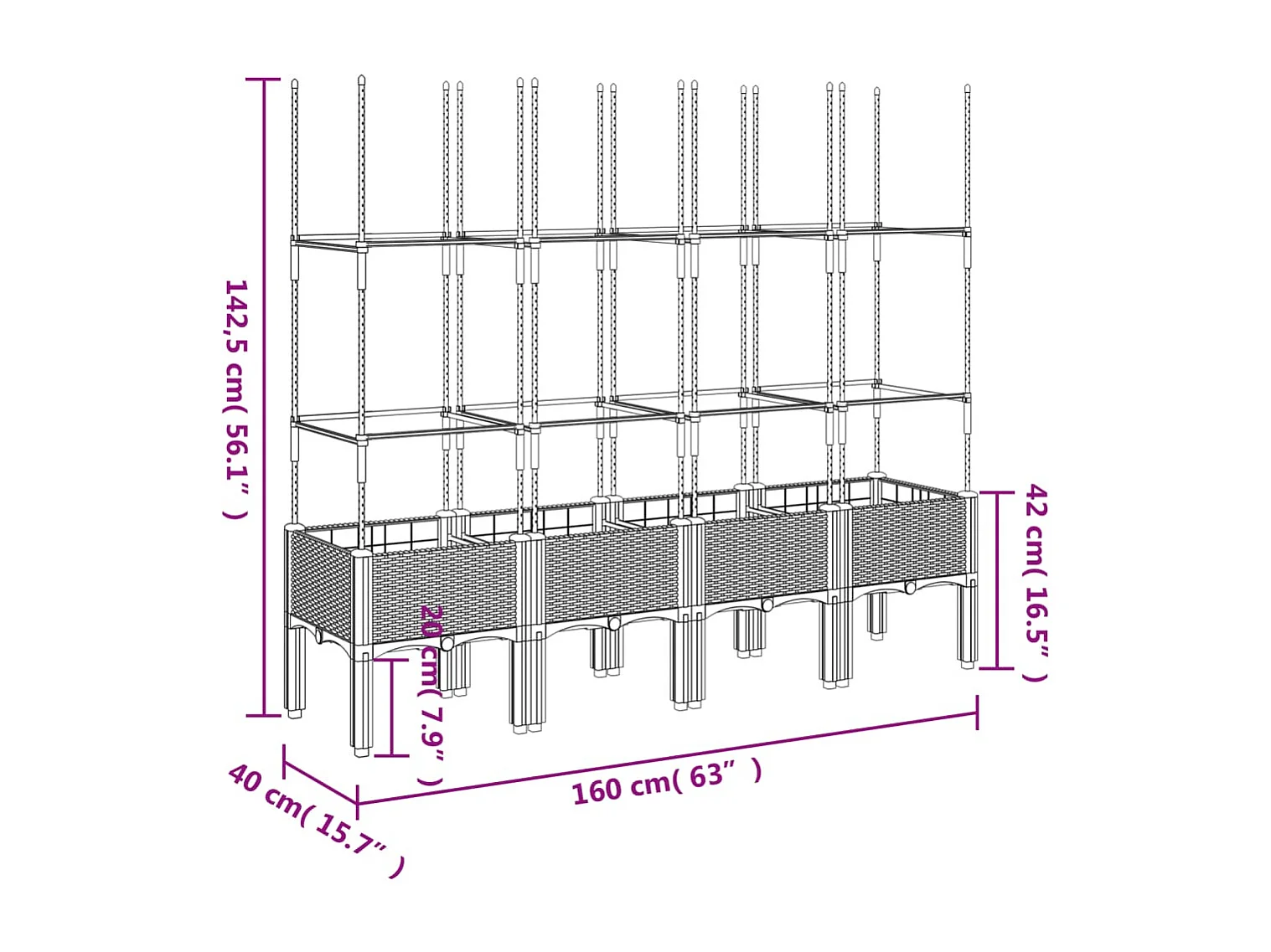 Jardinière avec treillis gris 160x40x142,5 cm PP