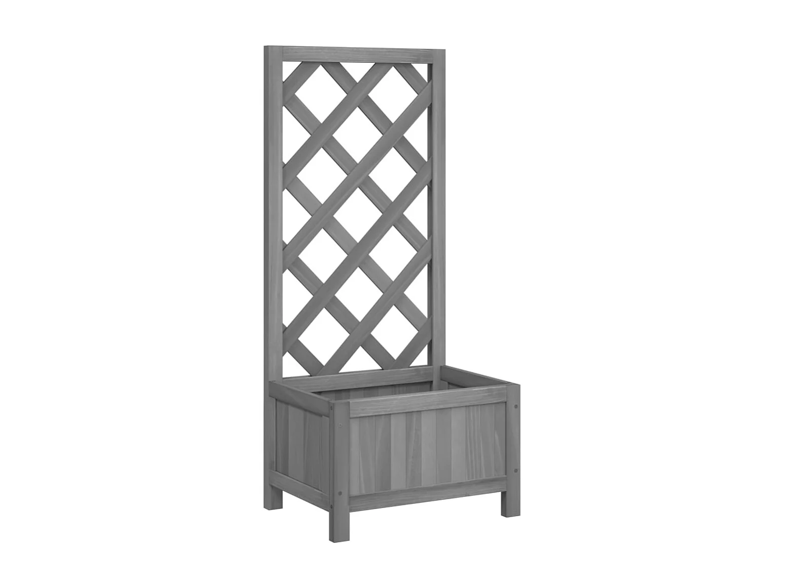 Jardinière avec treillis gris bois massif de sapin FR92356