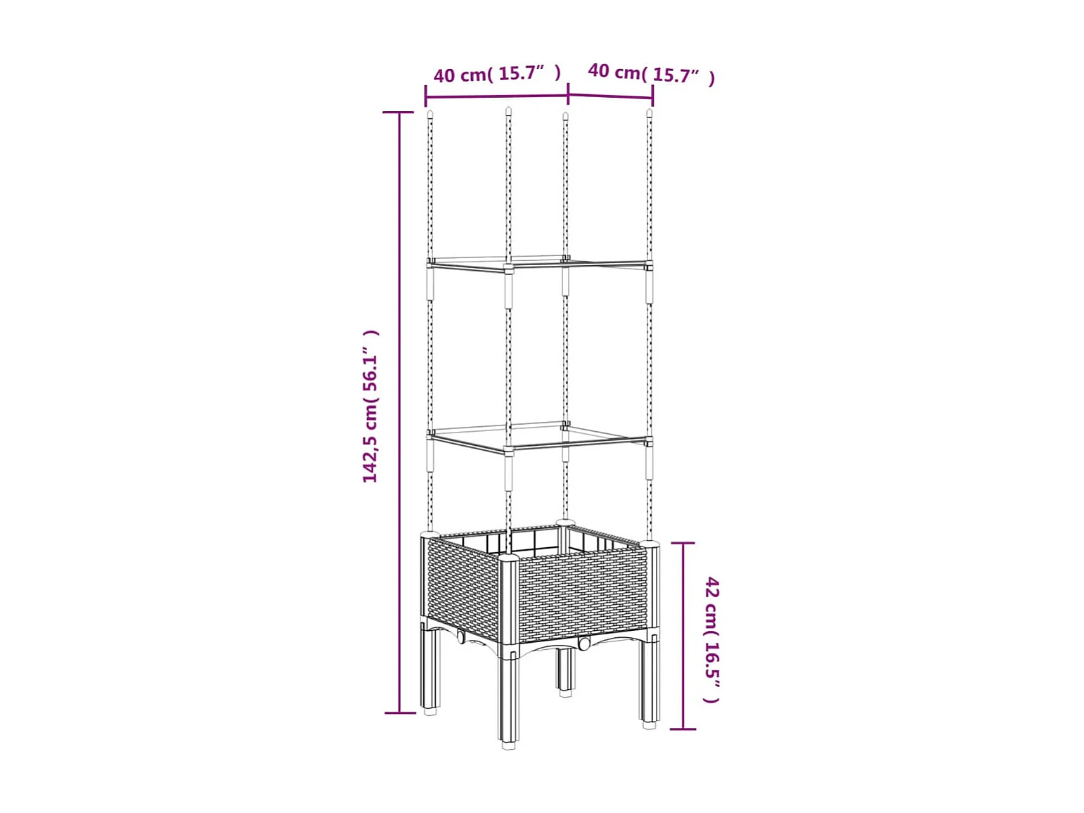 Jardinière avec treillis Gris clair 40x40x121,5 PP
