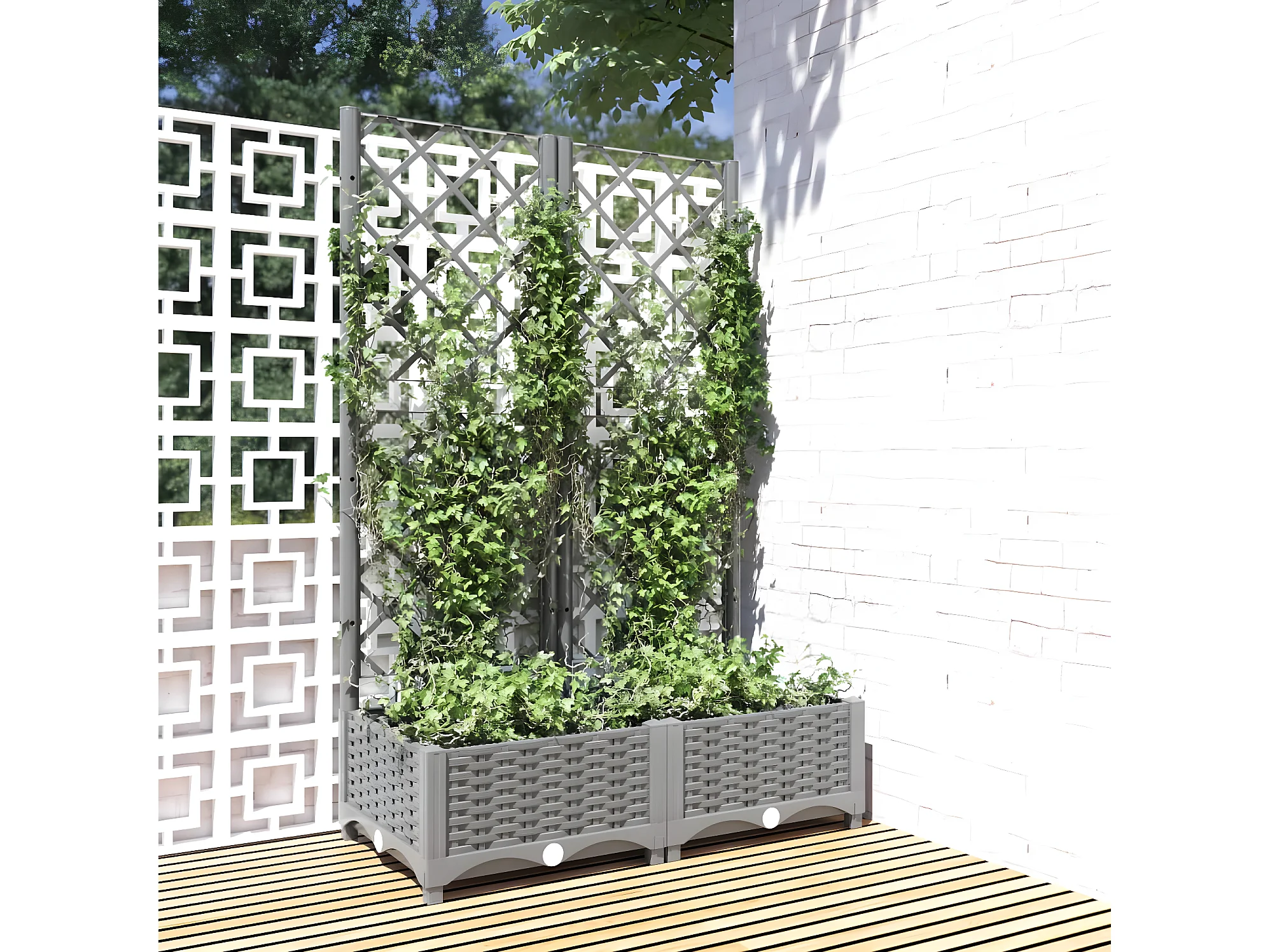 Jardinière avec treillis gris clair 80x40x142,5 PP