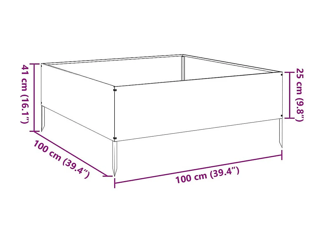 Jardinière bac lit surélevé 100 x 100 x 25 cm 02_0039264