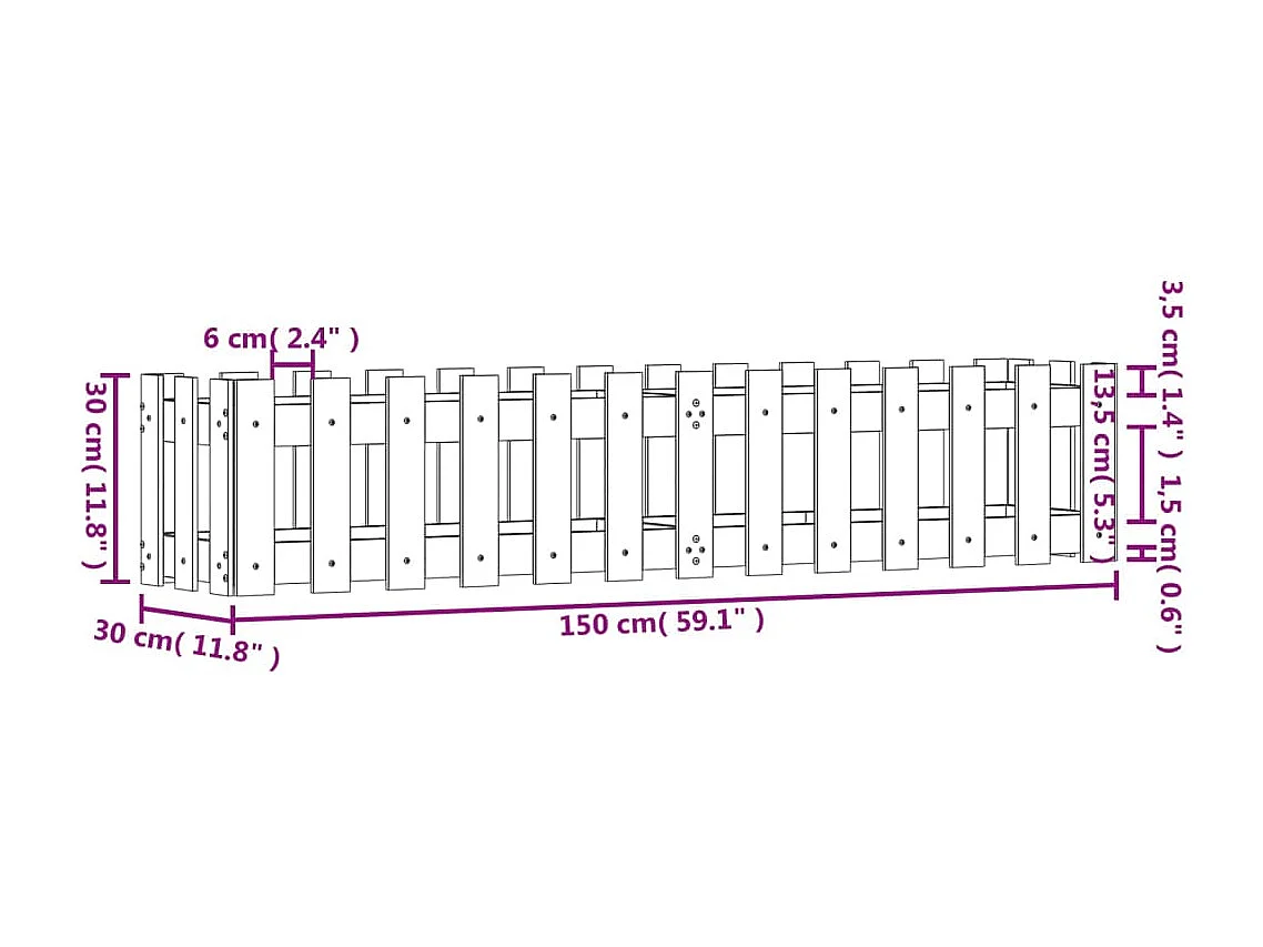 Jardinière bac lit surélevé bois marron 150 x 30 x 30 cm 02_0039822