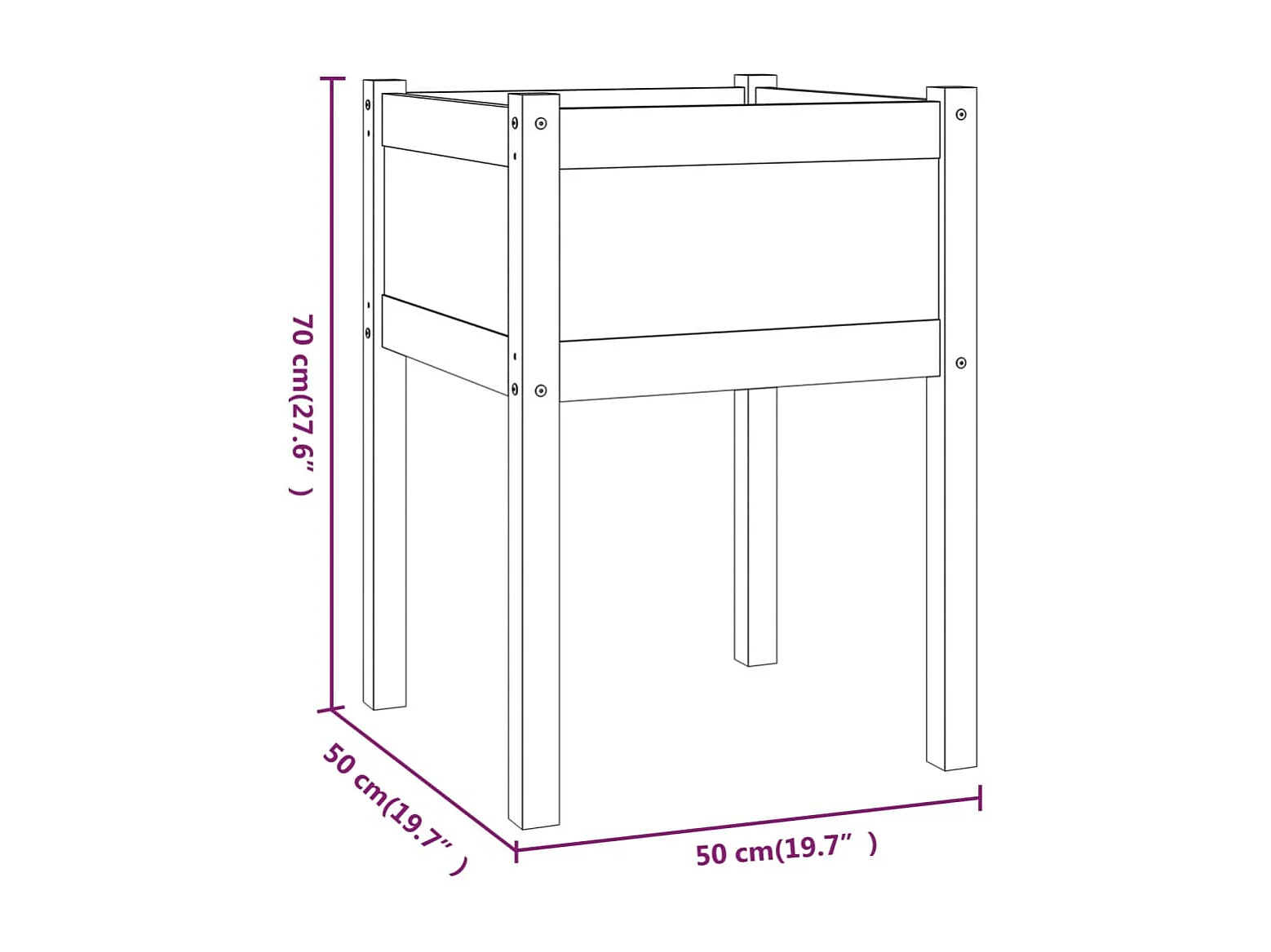 Jardinière bac lit surélevé bois marron 50 x 50 x 72.5 cm 02_0037679