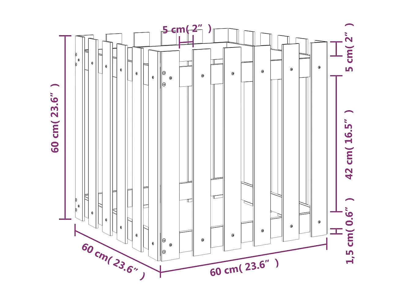 Jardinière bac lit surélevé bois marron 60 x 60 x 60 cm 02_0038558