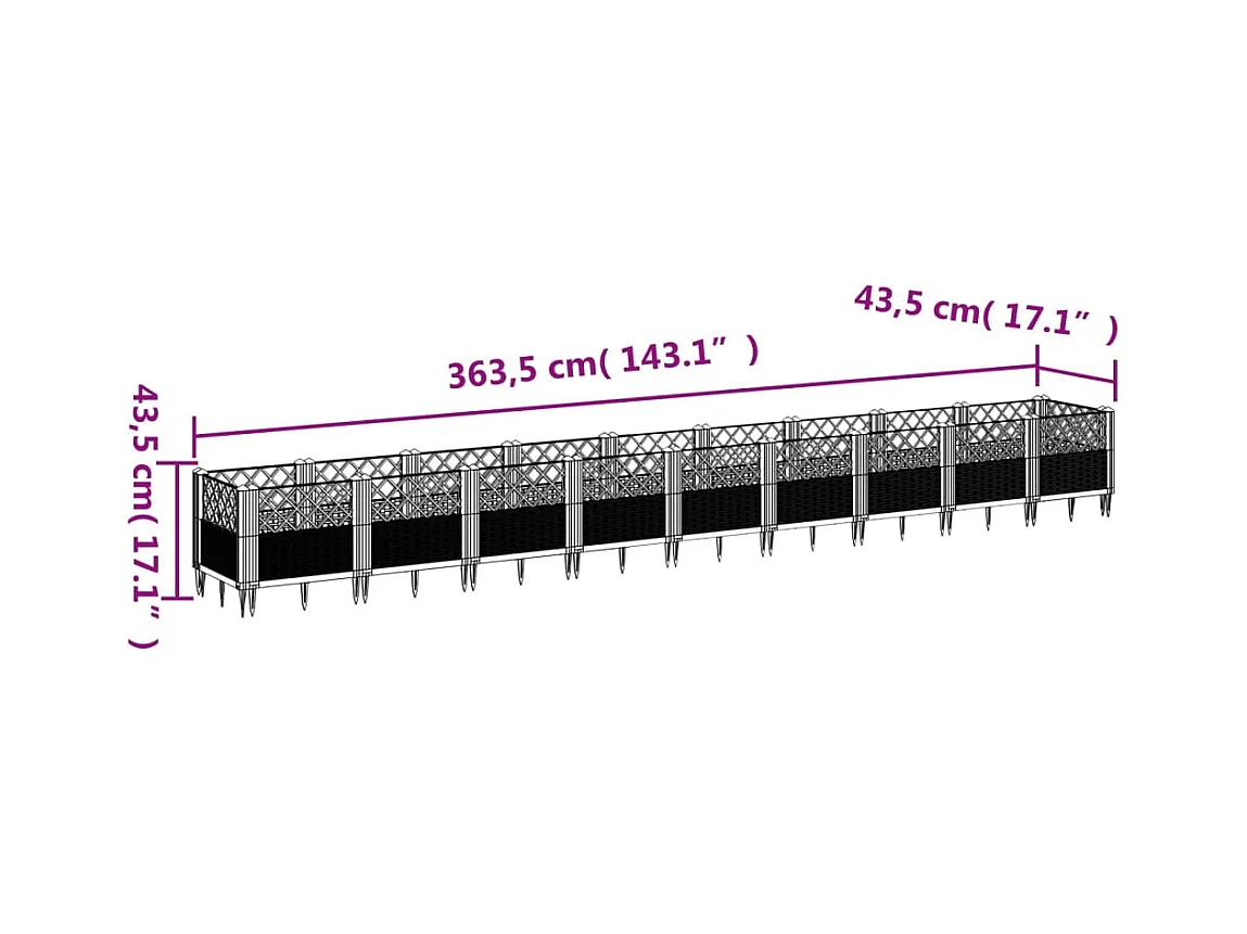 Jardinière bac lit surélevé noire 363 x 5 x 43 cm 02_0038196