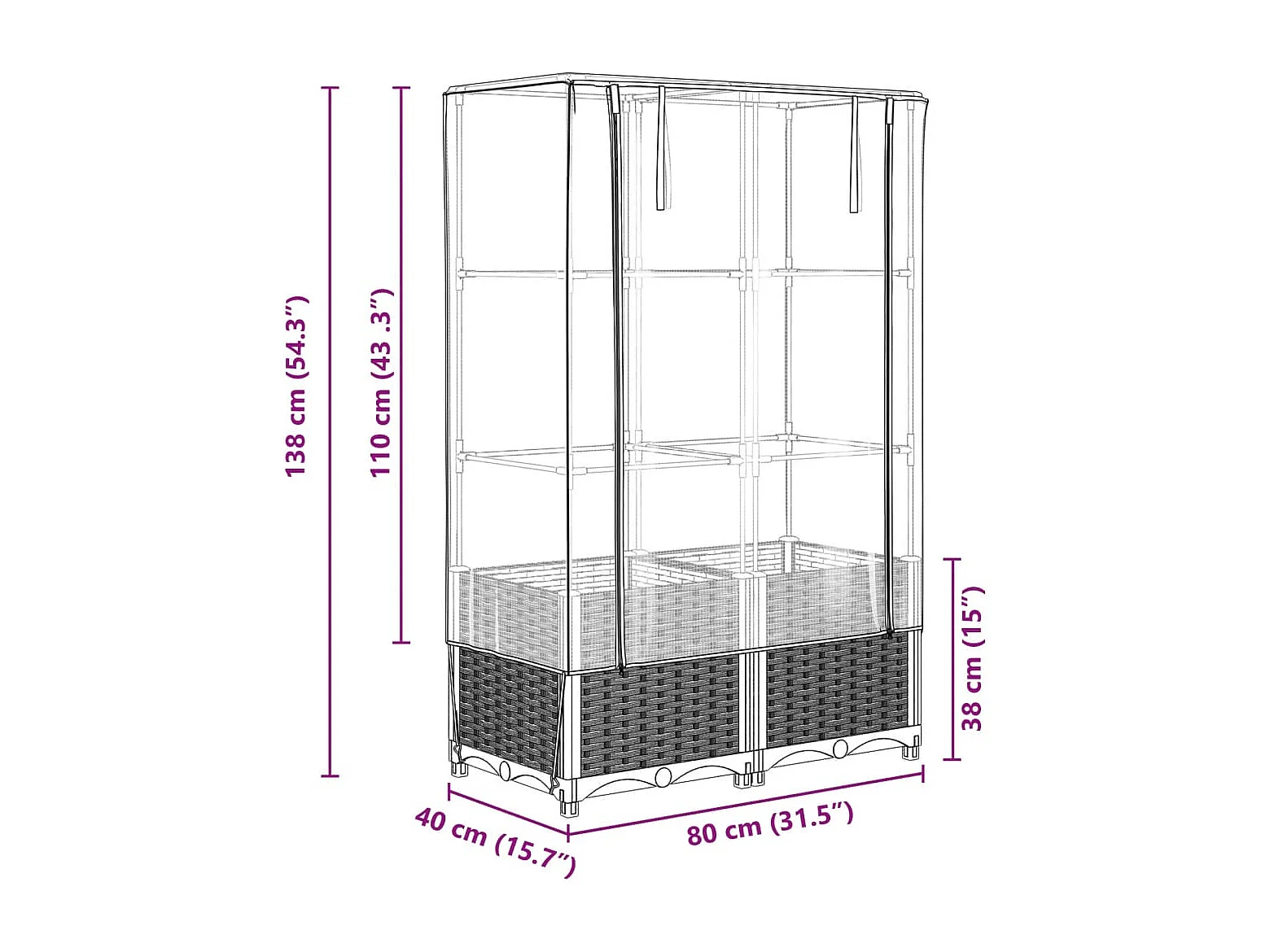 Jardinière bac lit surélevé noire 80 x 40 x 121.5 cm 02_0038304