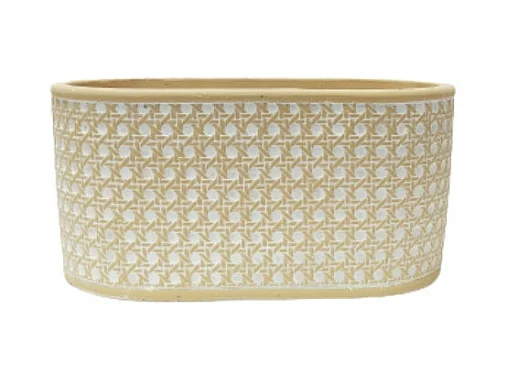 Jardinière "Cannage" béton beige et blanc 26.5 x 15 x 13 cm
