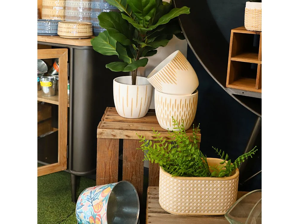 Cache-Pot Déco en Céramique "Sable" 27cm Beige