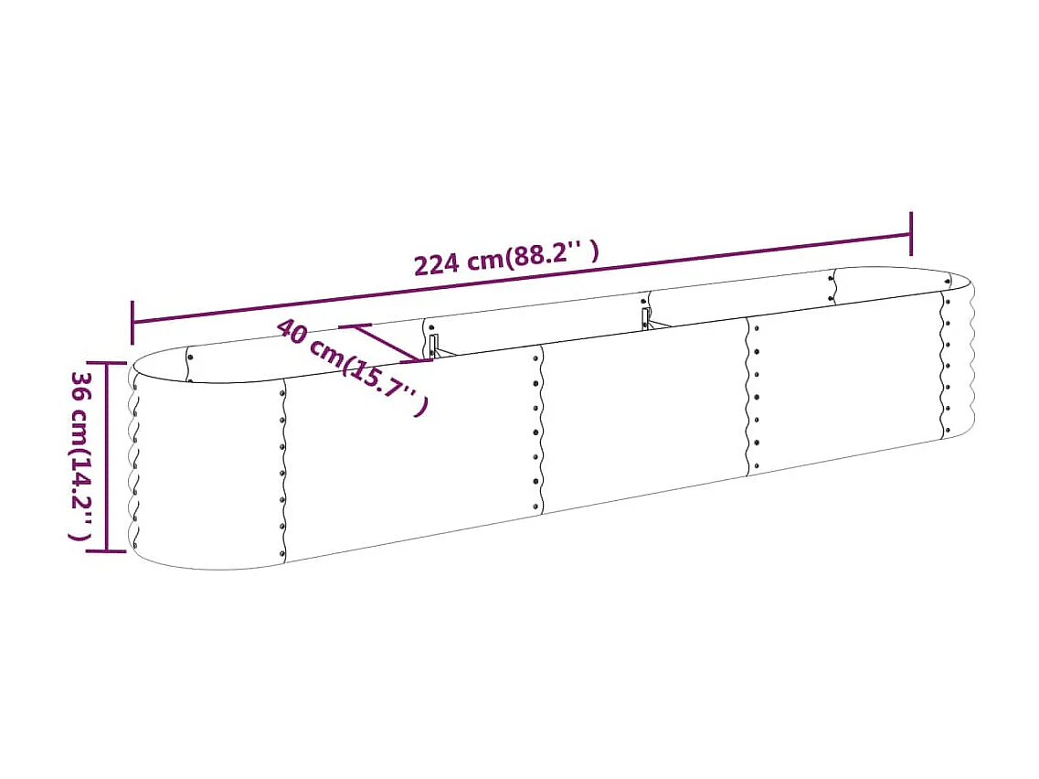 Jardinière de jardin Acier enduit de poudre 224x40x36 Vert