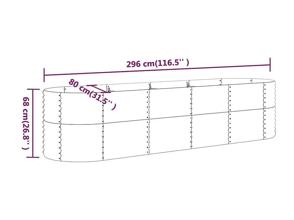 Jardinière de jardin Acier enduit de poudre 296x80x68 Marron