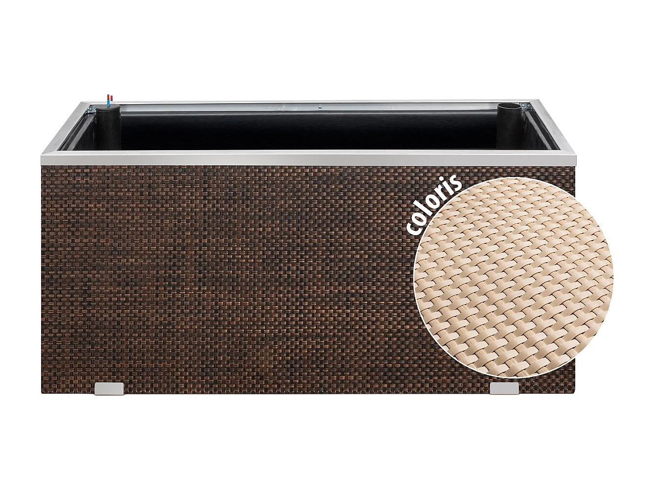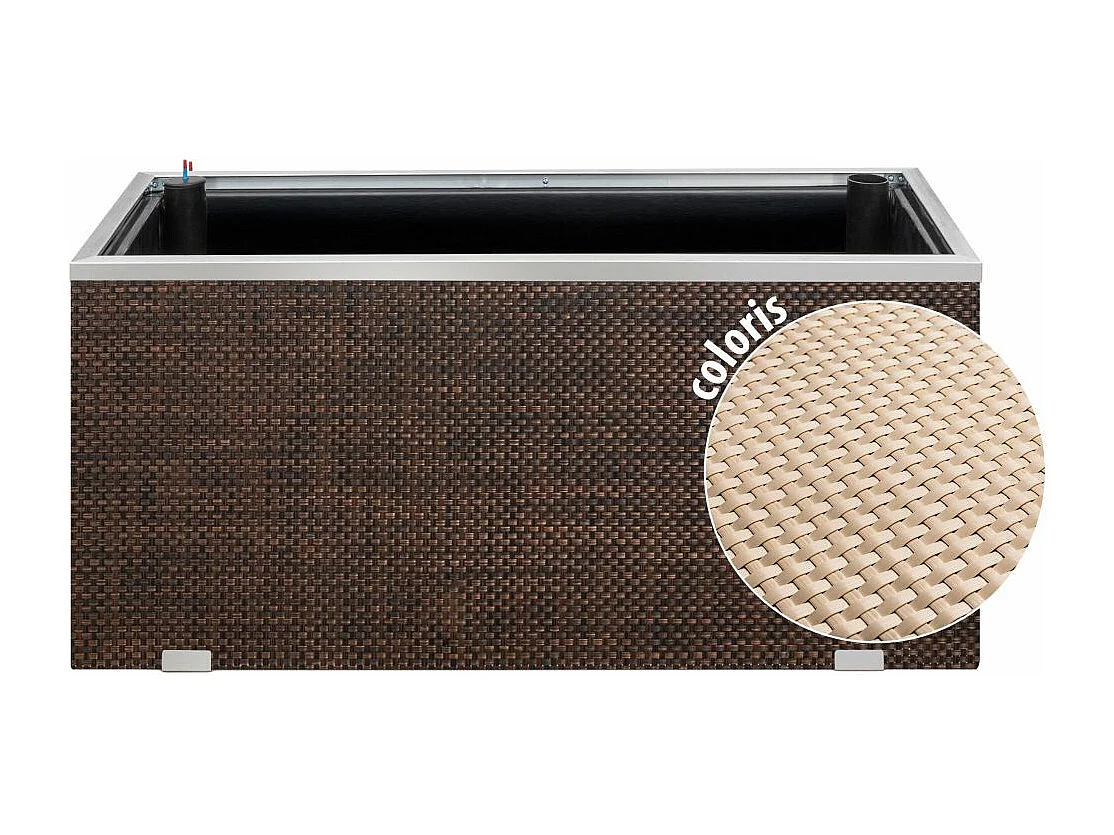 Jardinière en résine tressée avec réserve d'eau et cadre en aluminium 95 x 39 x 43 cm Beige