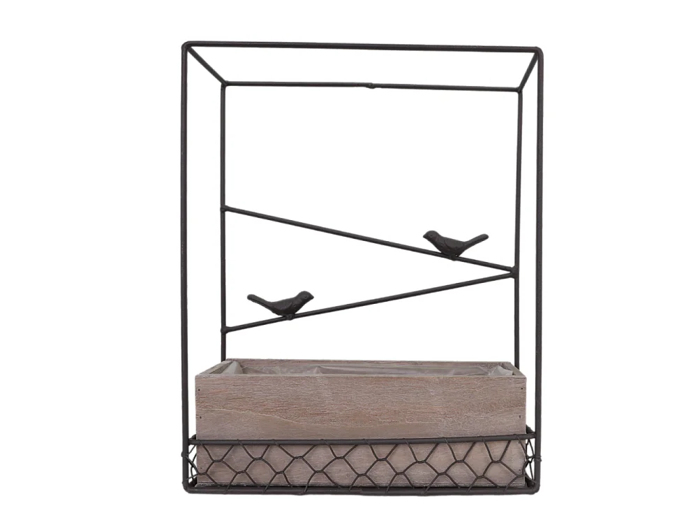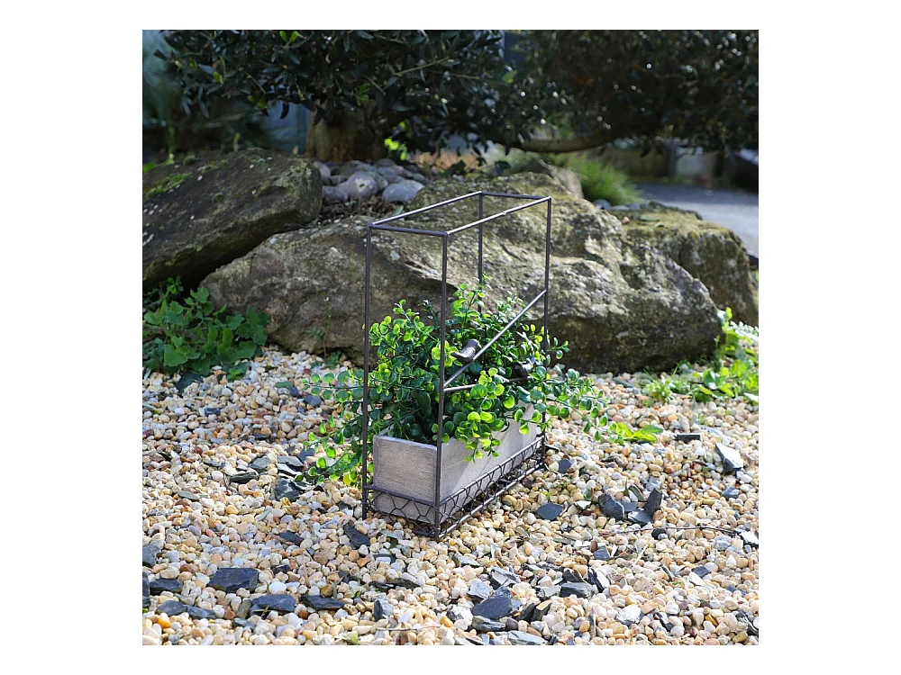 Jardinière extérieure pot fleurs jardin bois métal marron 21x12x24.5cm