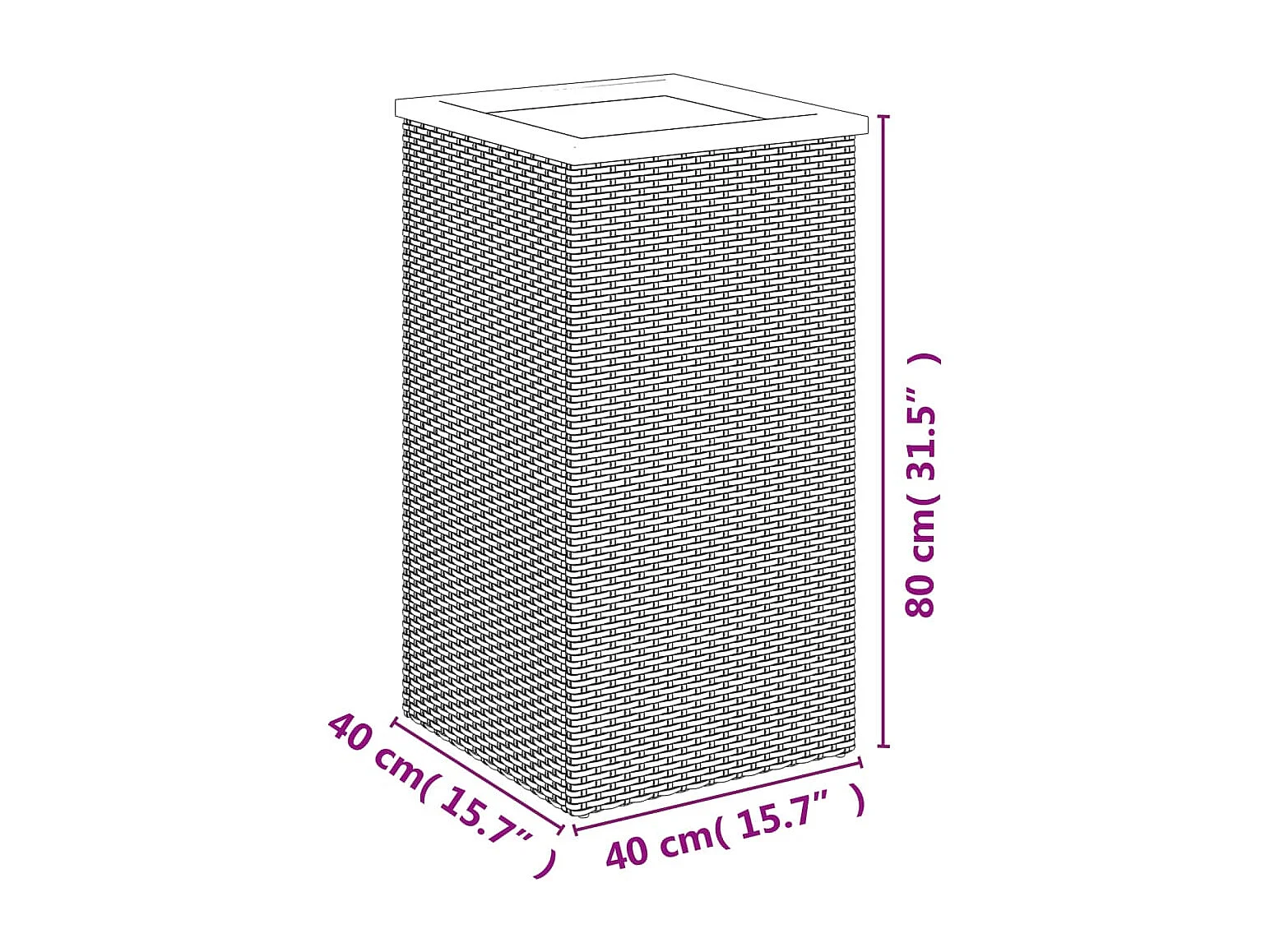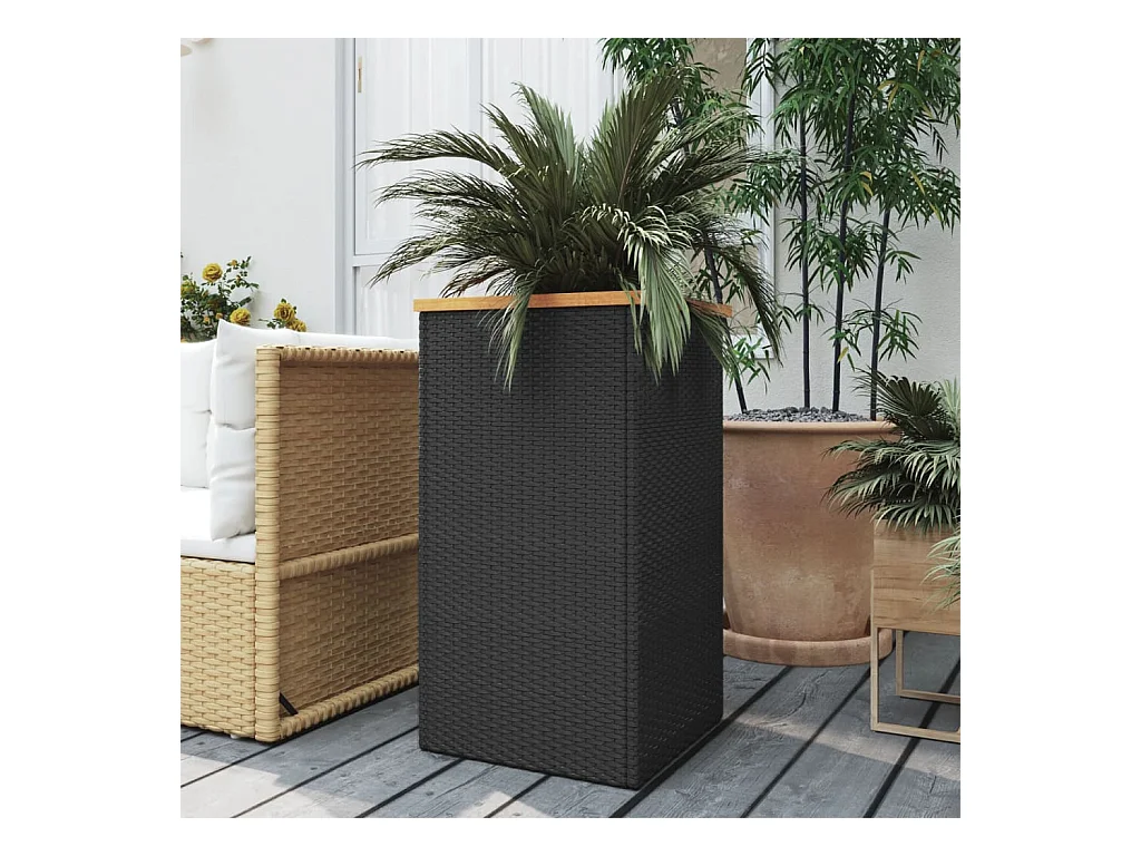 Jardinière noir 40x40x80 cm résine tressée