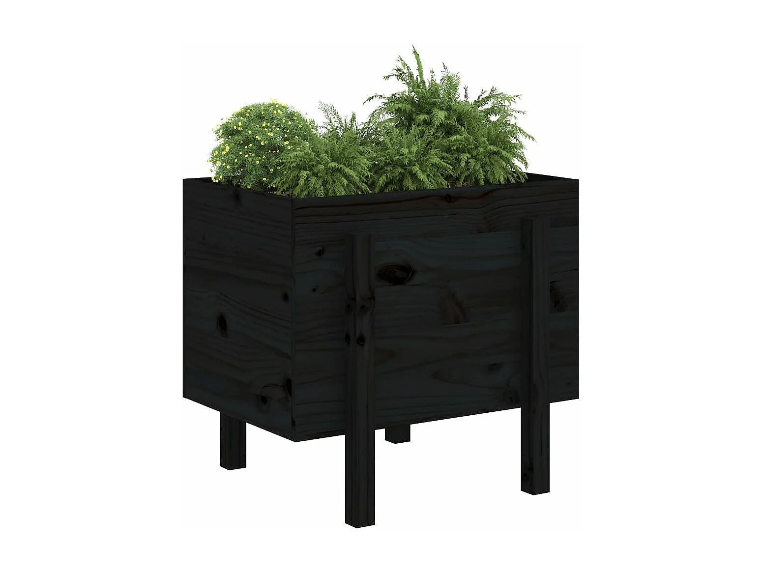 Jardinière avec design de clôture noir 60x30x30 pin massif