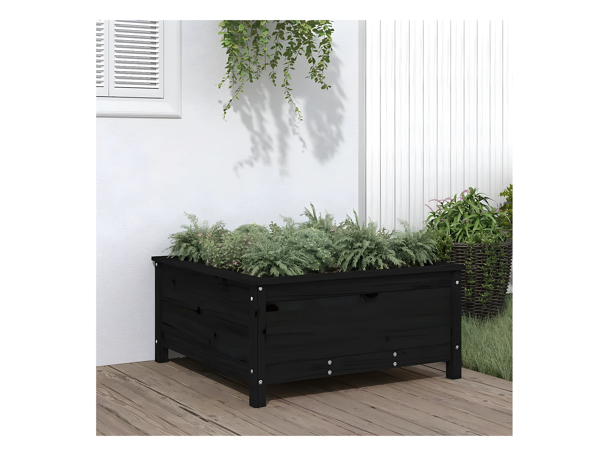 Jardinière noir 82,5x82,5x39 cm bois massif de pin BE2055