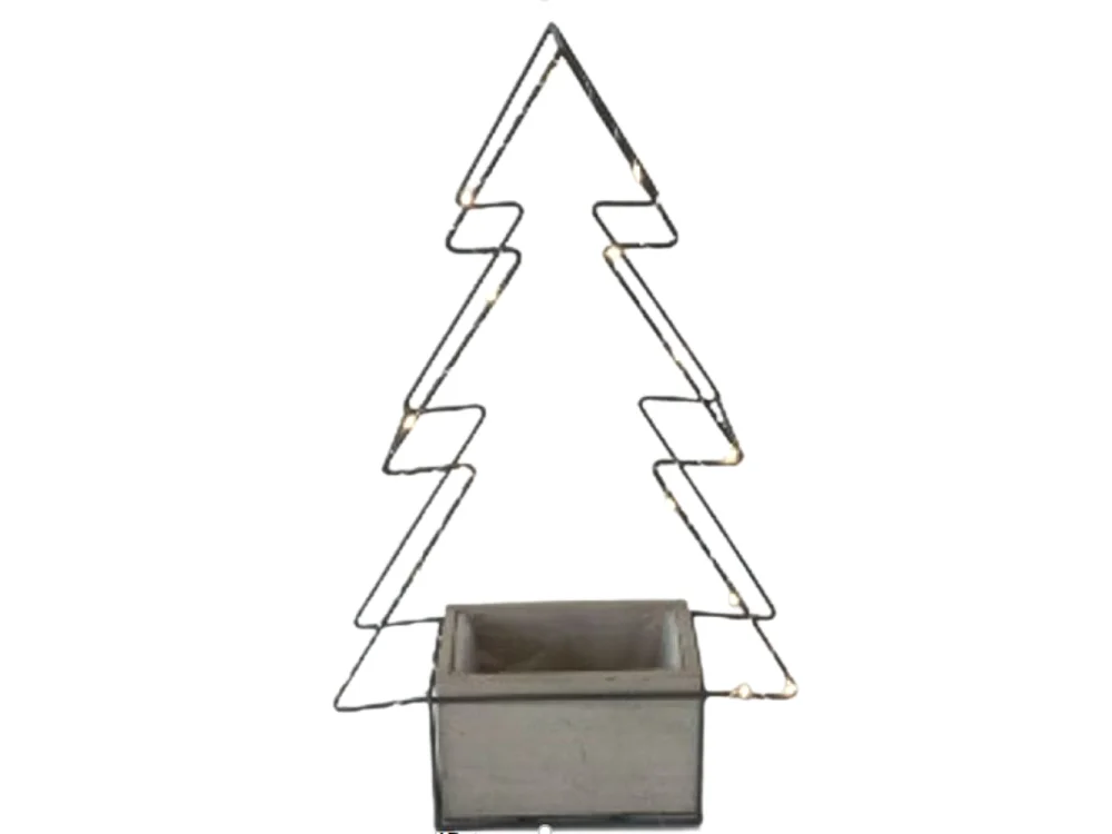 Jardinière sapin de Noël décoration bois métal marron 30.5x18x50cm