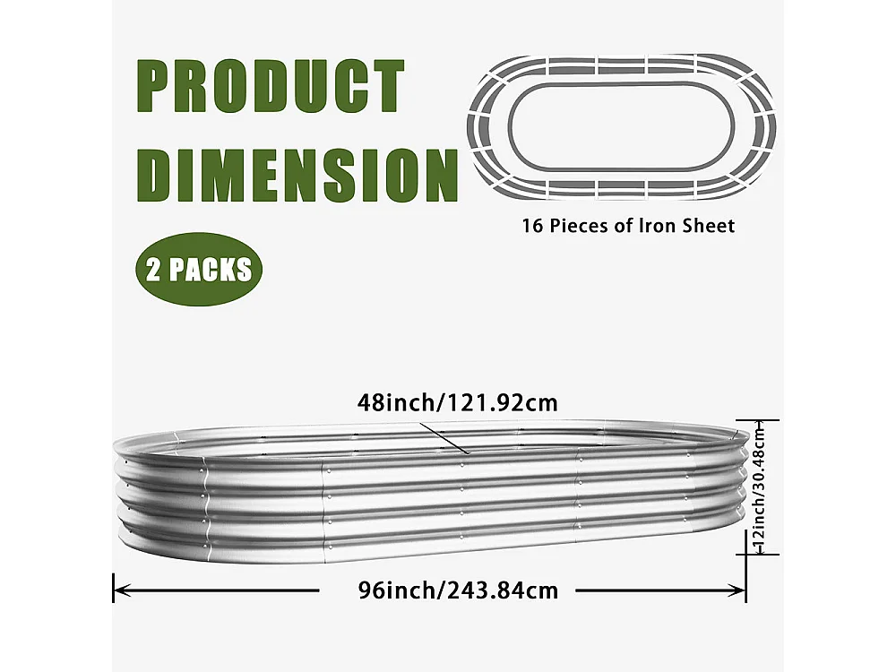 Plate bande surélevée métal plates bandes en tôle acier robuste conception stable protection antirouille longue durée kit sans fond argent 8x3x1ft