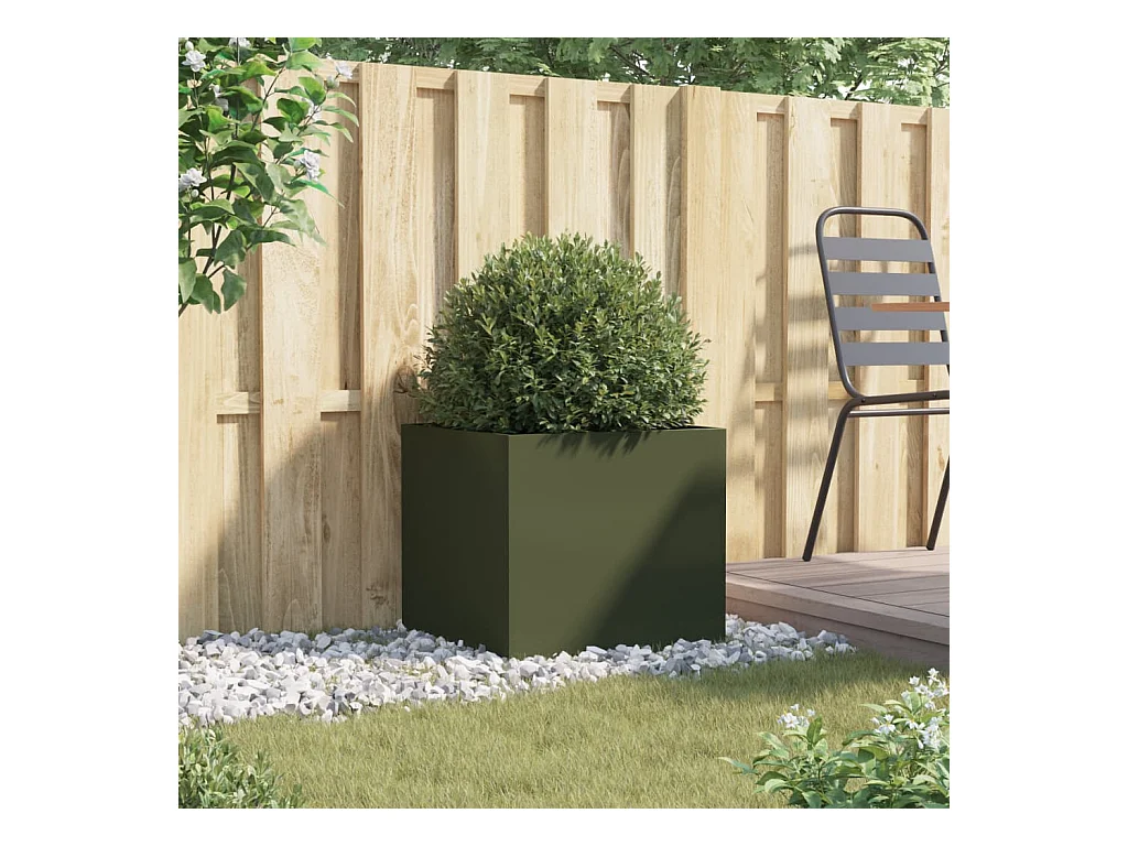 Jardinière vert olive 49x47x46 cm acier laminé à froid FR65464