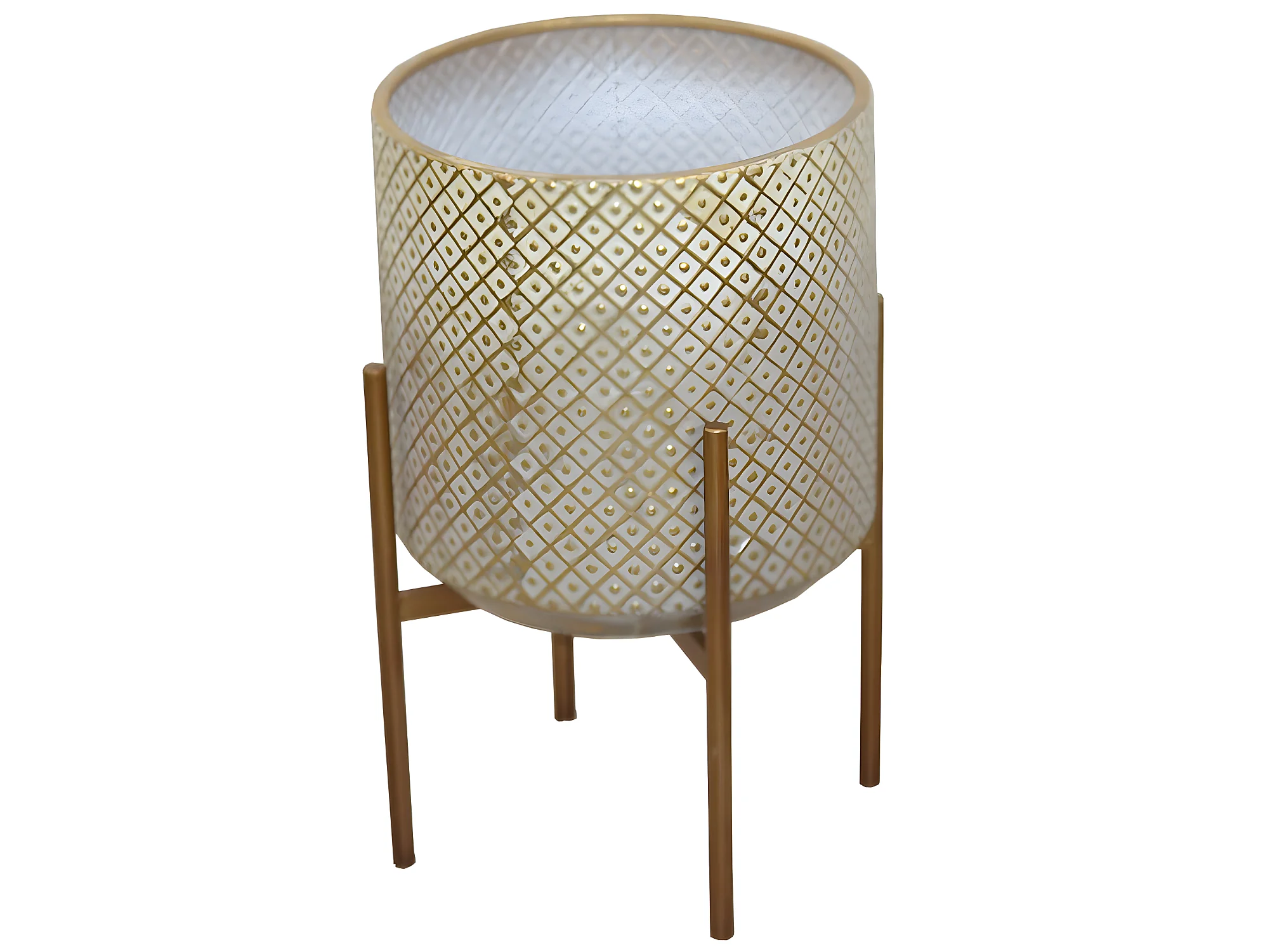 Jardinières porte-fleurs galbé en métal argentée 30 x 30 x 42 cm 05_0000403