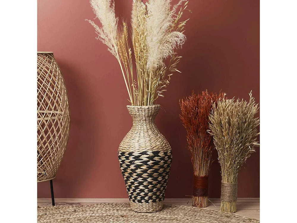 VASE Le Caire 32 cm, paille tressée nature-jaune