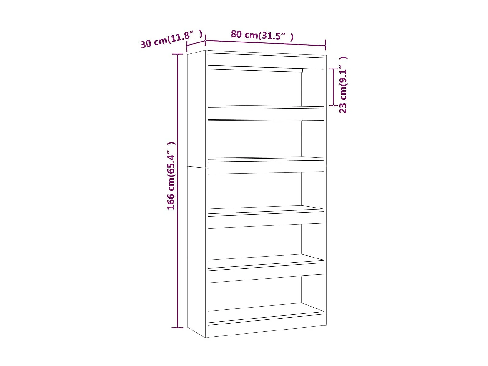 Aruna Bibliothèque/Séparateur de pièce Noir 80x30x167,4 cm Pin massif
