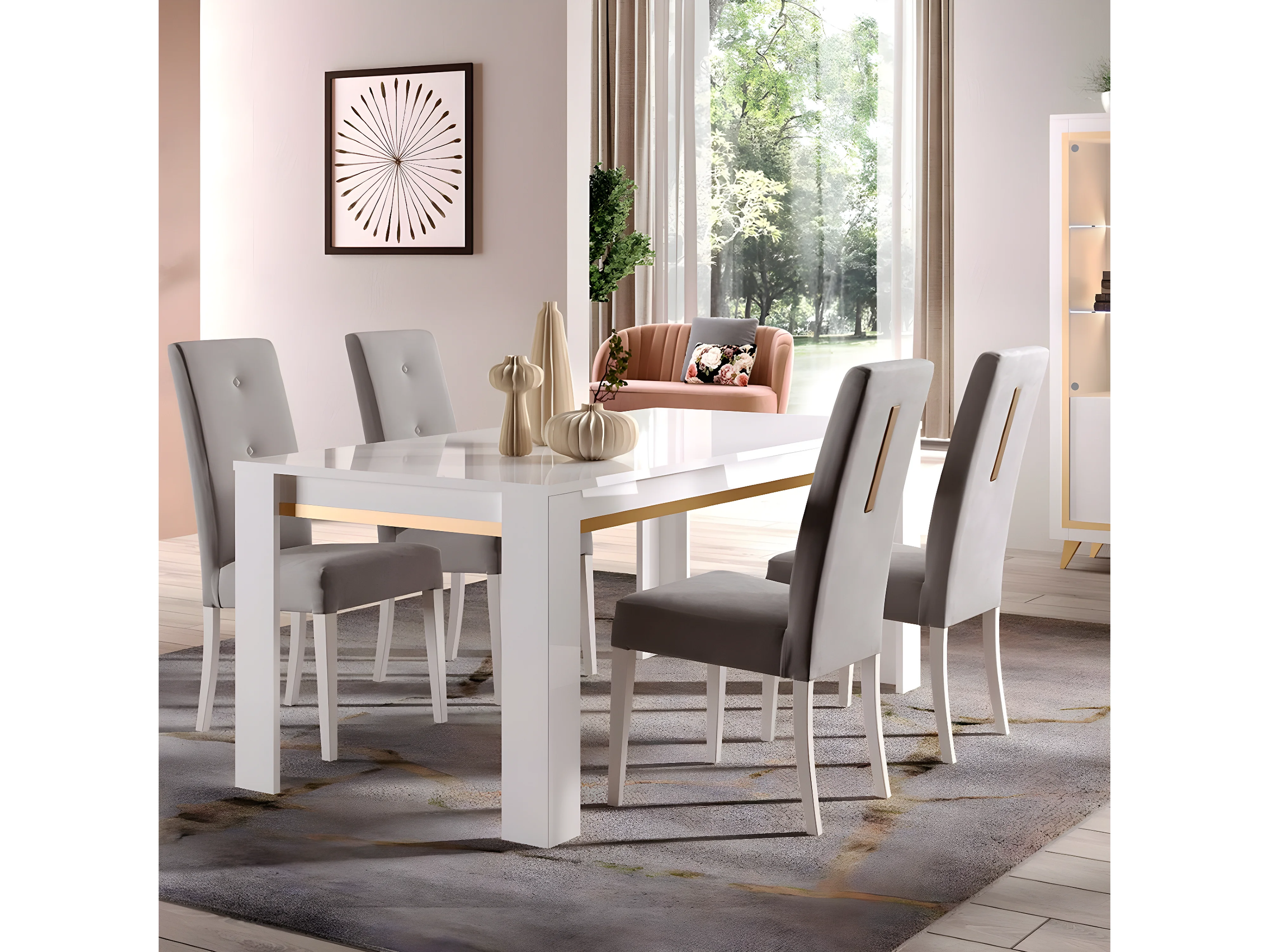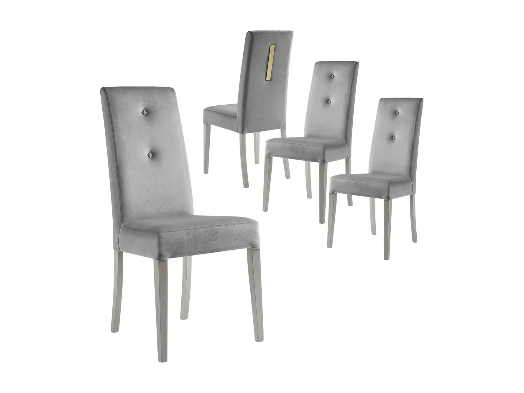 JEMMA - Lot de 4 Chaises Suédine Grise Détail Doré et Bois Gris