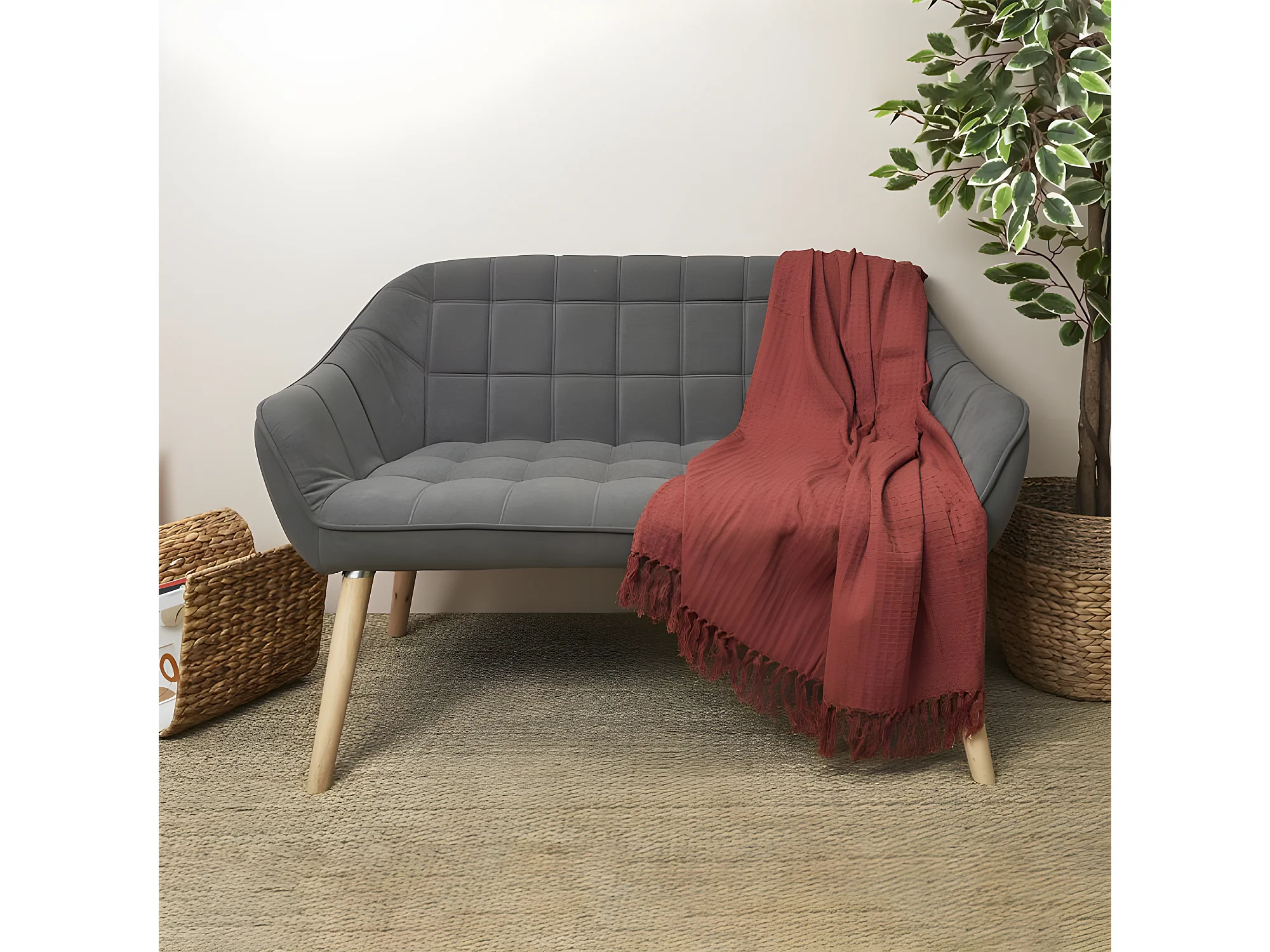 Jeté de Canapé "Gaufré" 130x160cm Terracotta