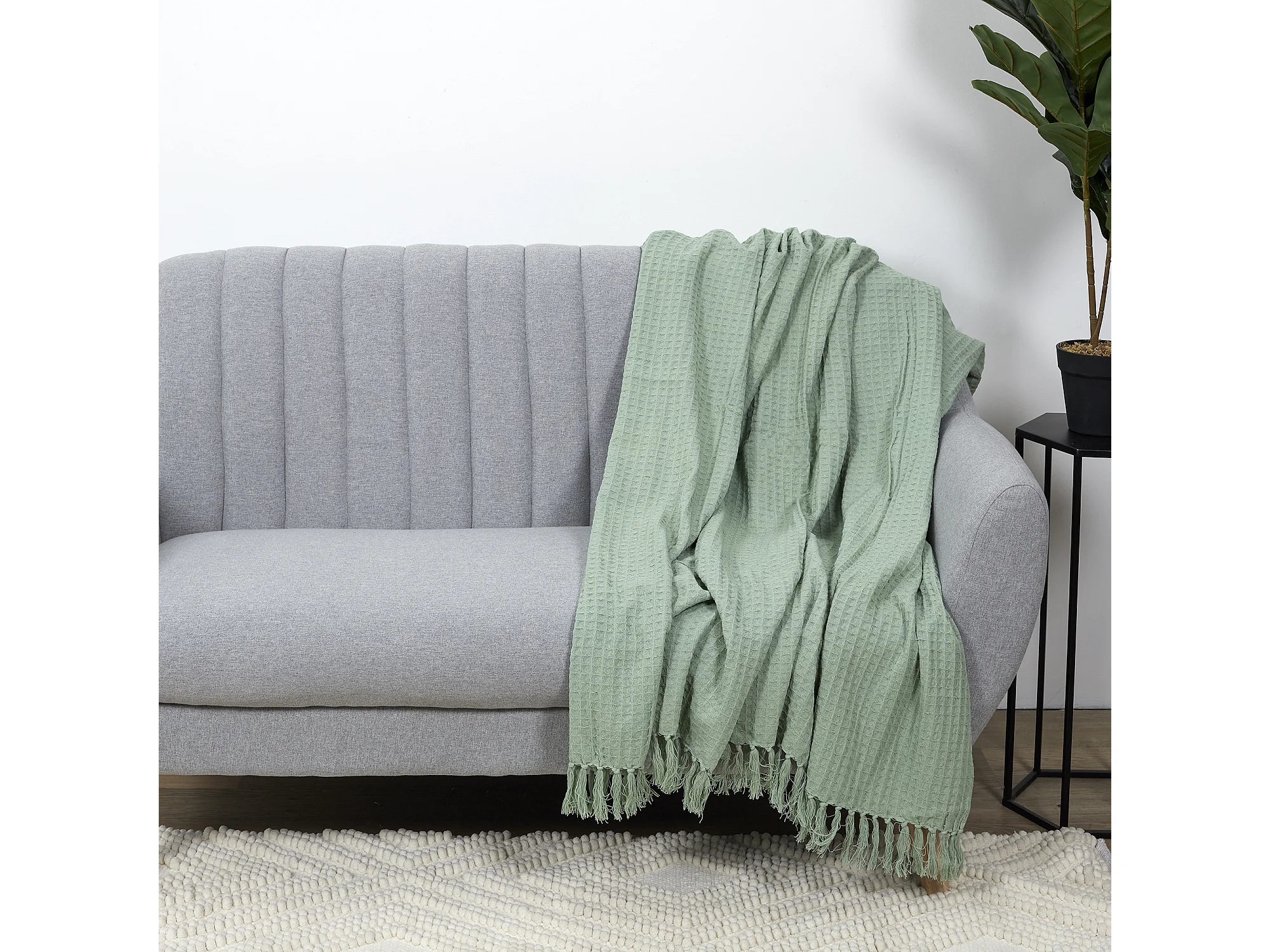Jeté de Canapé "Gaufré" 130x160cm Vert d'Eau