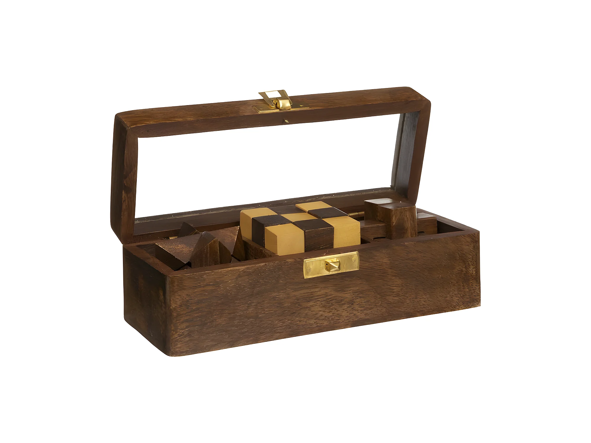 Jeu de 6 casse-têtes dans une boîte en bois marron 17,5x12x6h