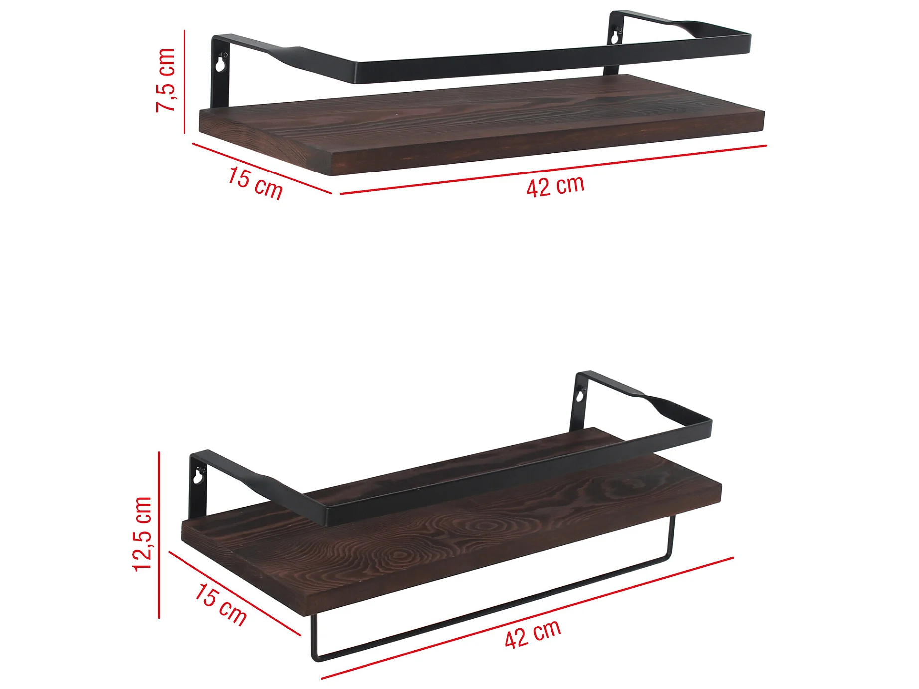 Jeu de 2 étagères murales en bois et métal pour salon et cuisine