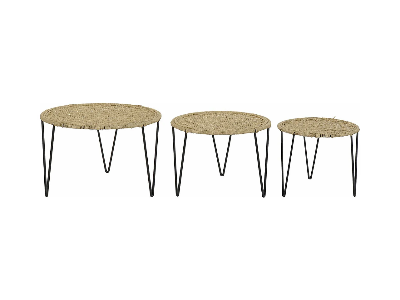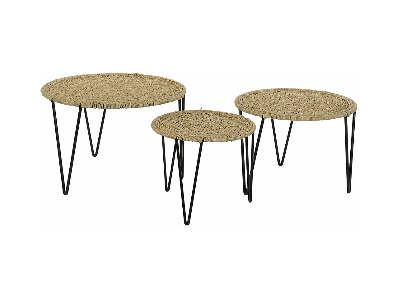 Jeu de 3 tables DKD Home Decor Marron Noir Naturel Métal Corde 62 x 62 x 40 cm