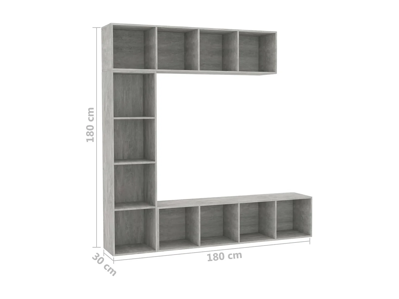 Jeu de bibliothèque-meuble TV 3 pcs Gris béton 180x30x180