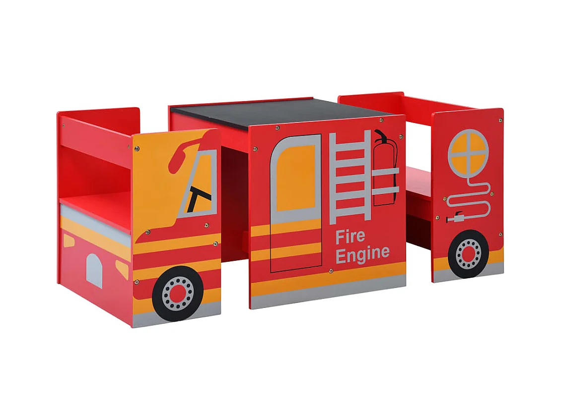 Jeu de table et chaises d'enfants 3 pcs Camion de pompiers Bois