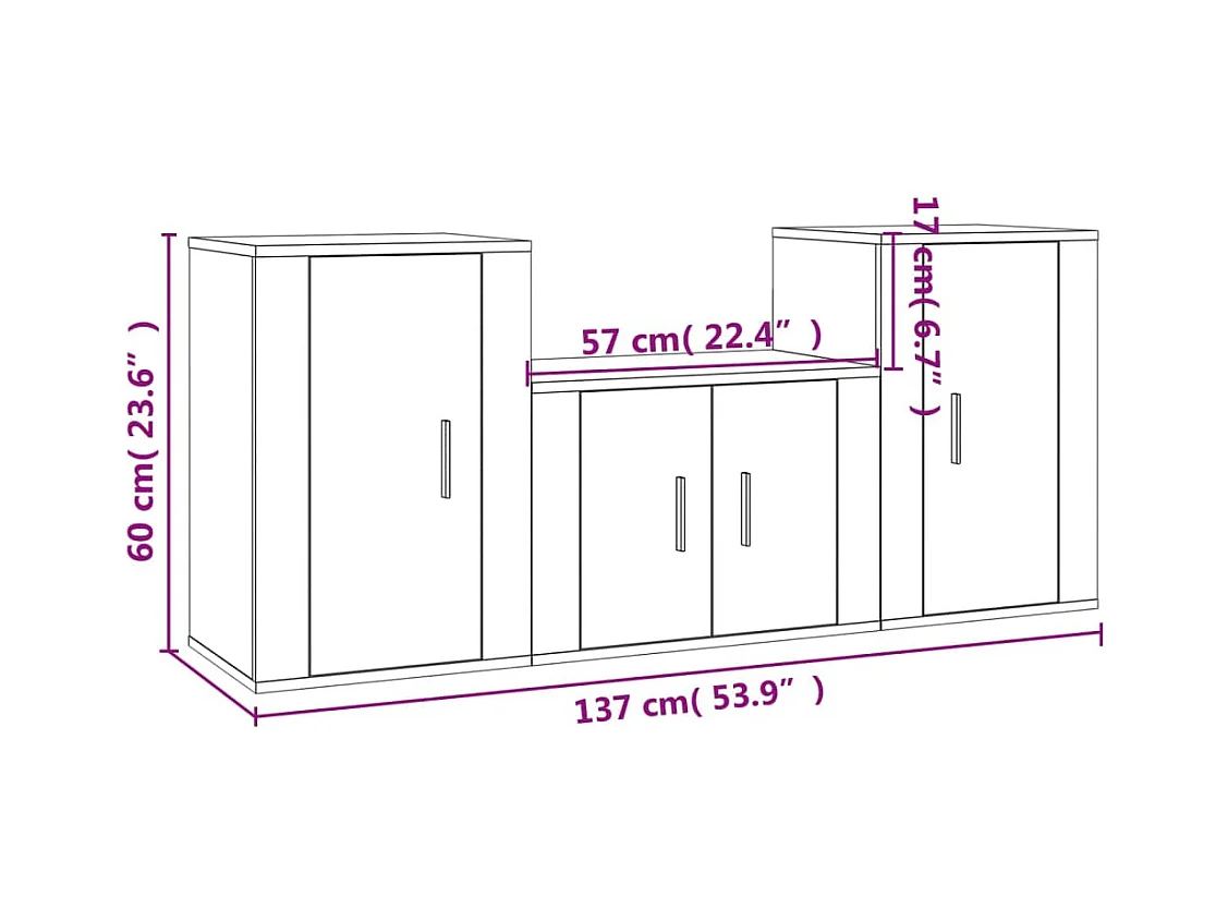 Joep Ensemble de meubles TV 3 pcs Sonoma gris Bois d'ingénierie