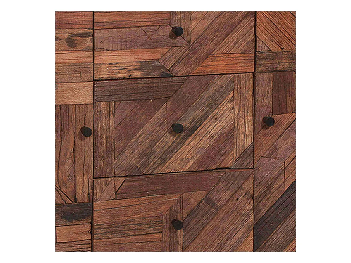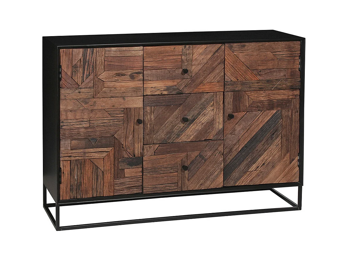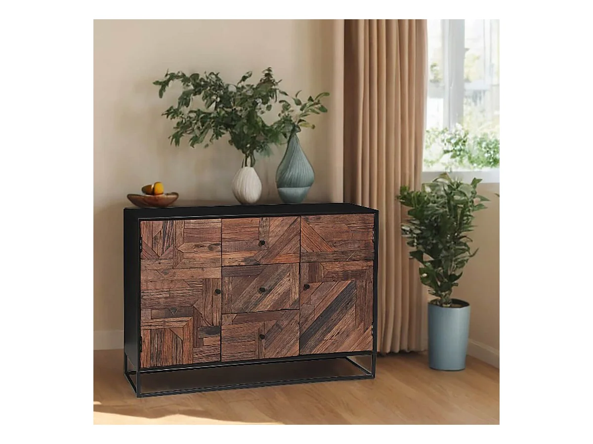 JORDAN - Buffet 2 Portes 3 Tiroirs en Métal Noir et Bois Recyclé