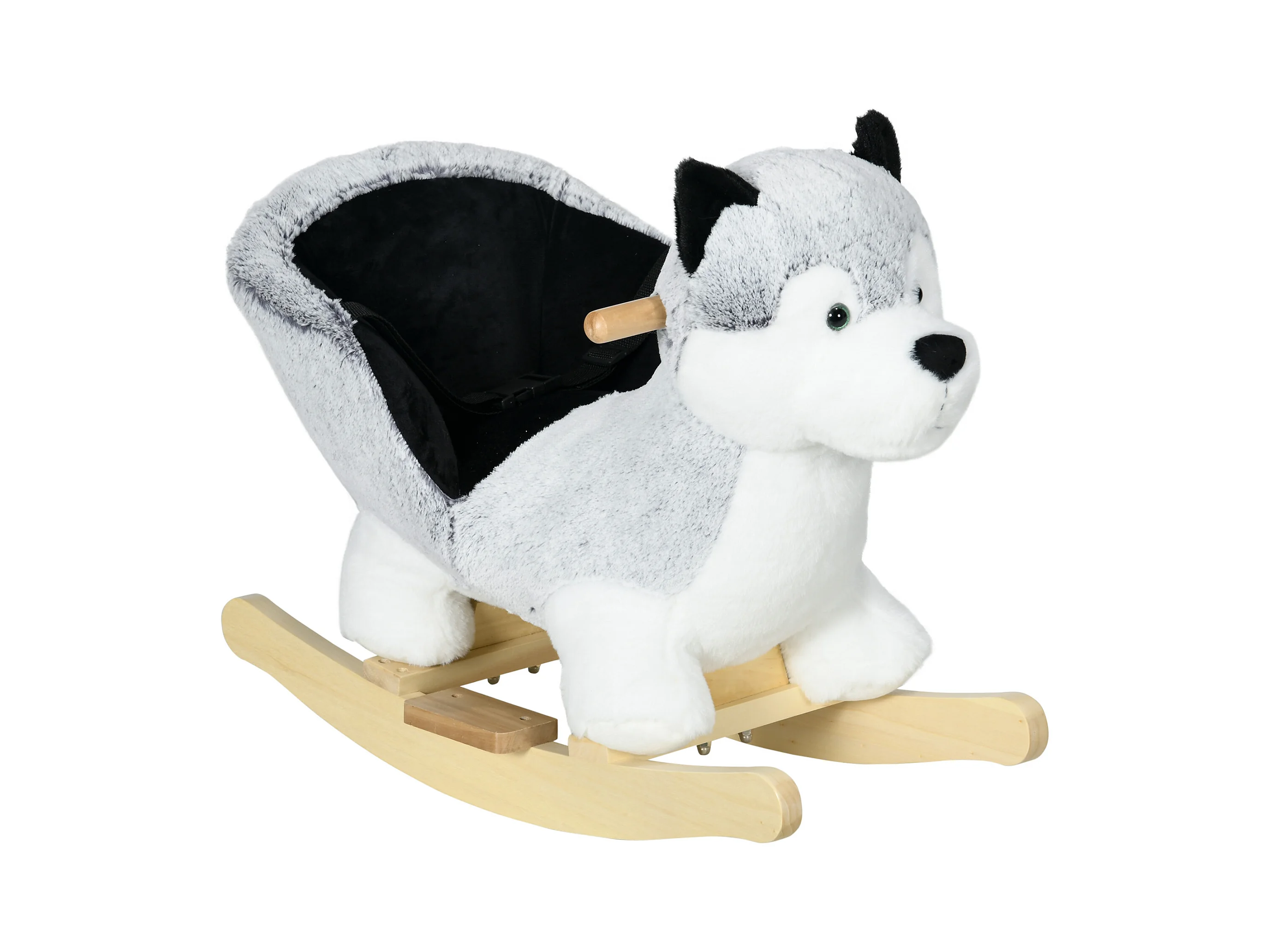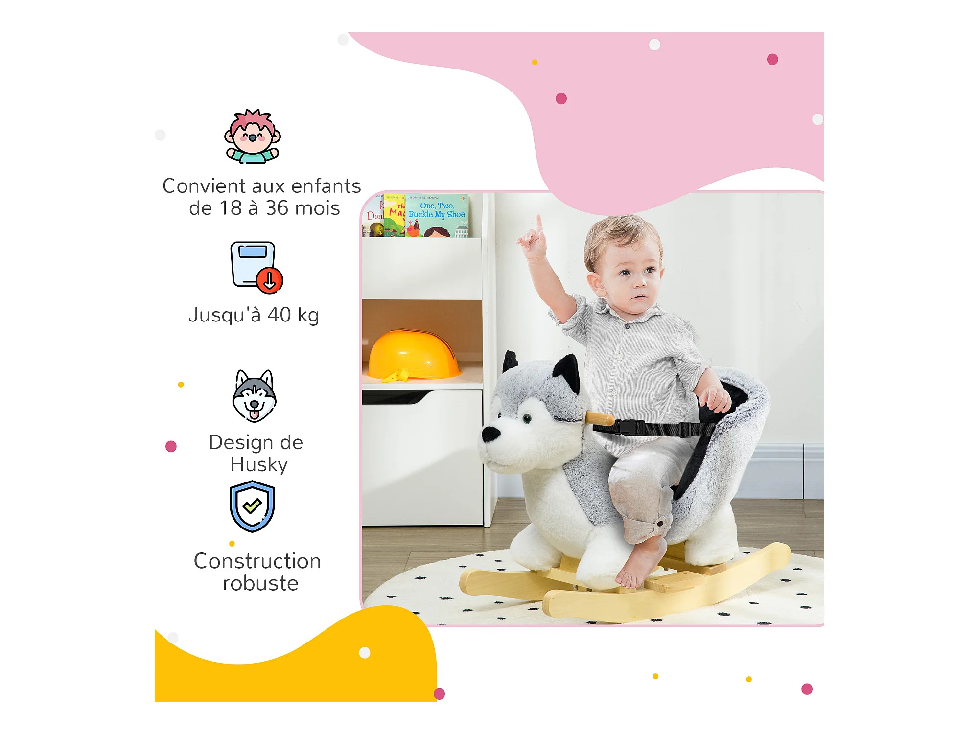 Jouet à bascule Husky pour enfant +18 mois effet sonore poignées siège ceinture réglable gris clair