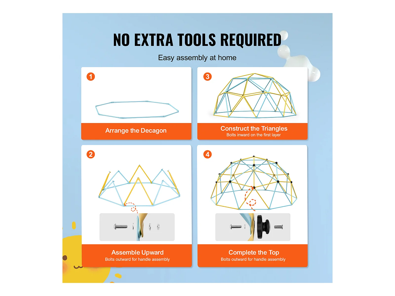 Jouet SucceBuy Dôme D'escalade de 300CM avec Hamac Et Balançoire, Jungle Gym pour Enfants